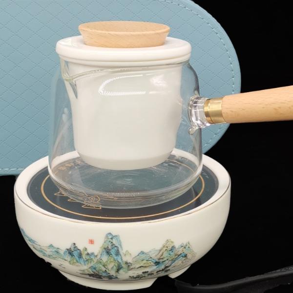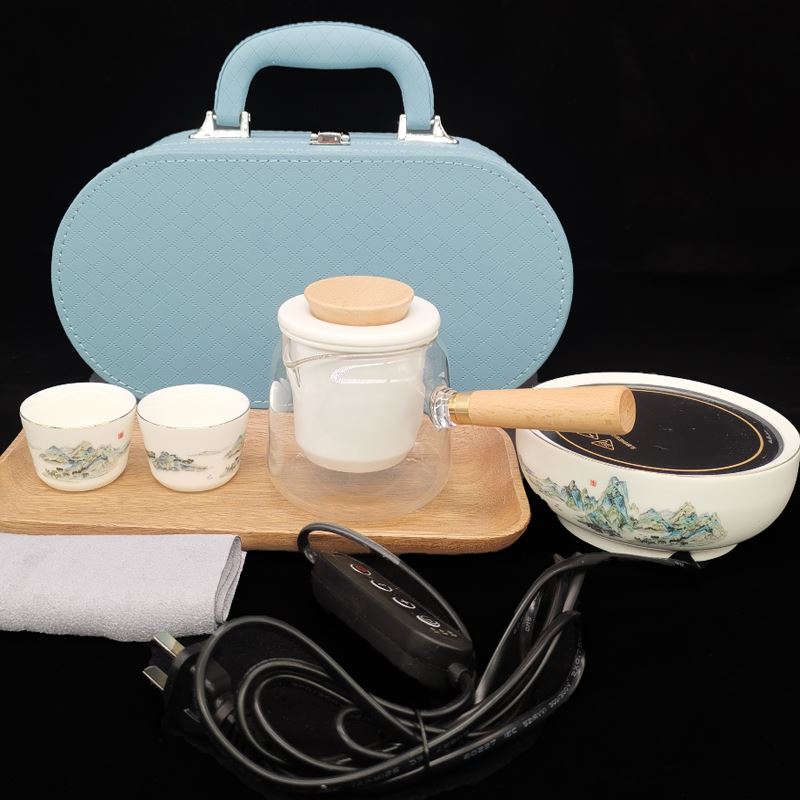 鹏翼端午节描金千里江山电磁炉煮茶器套装围炉煮茶