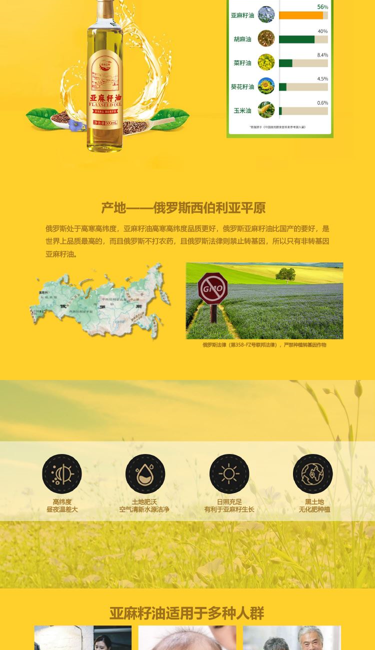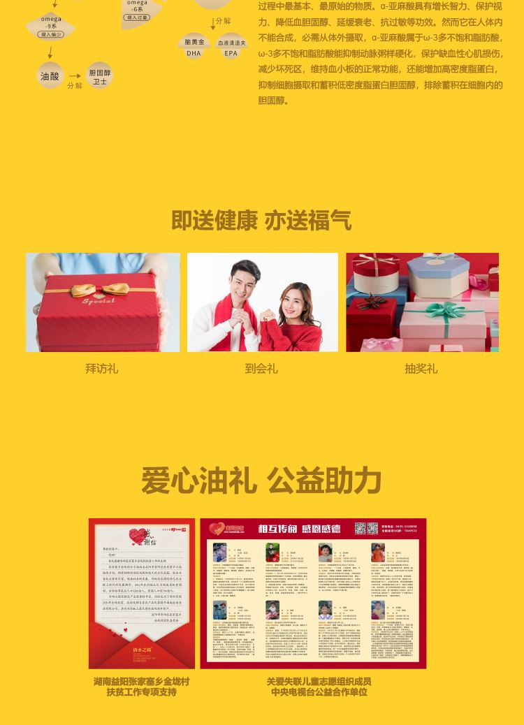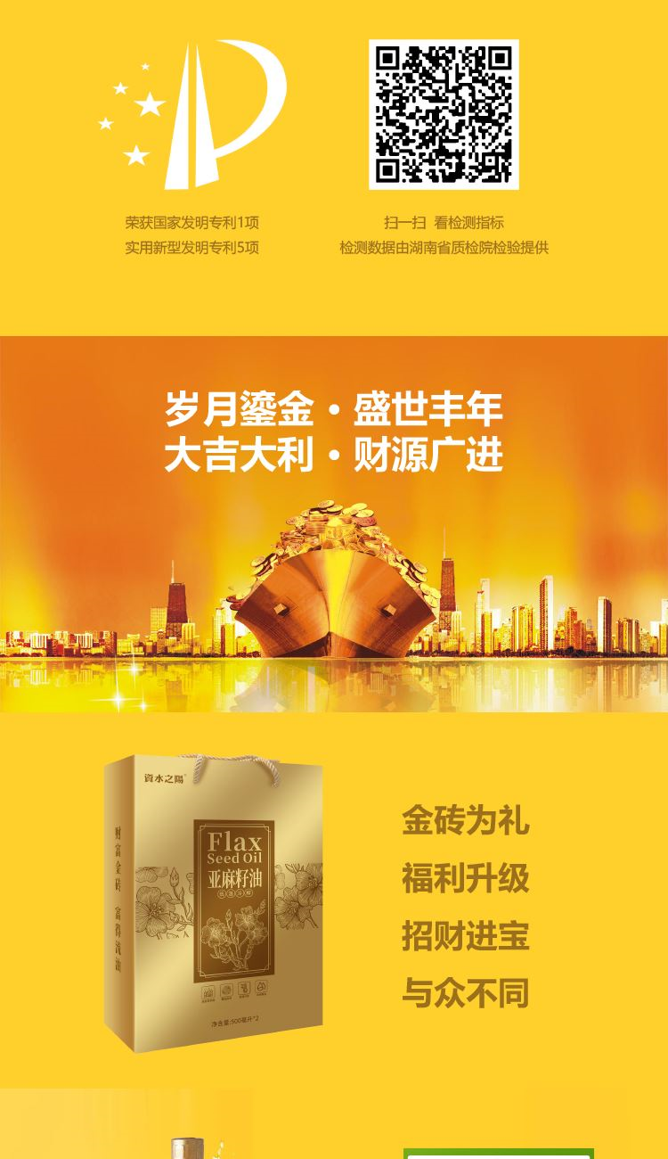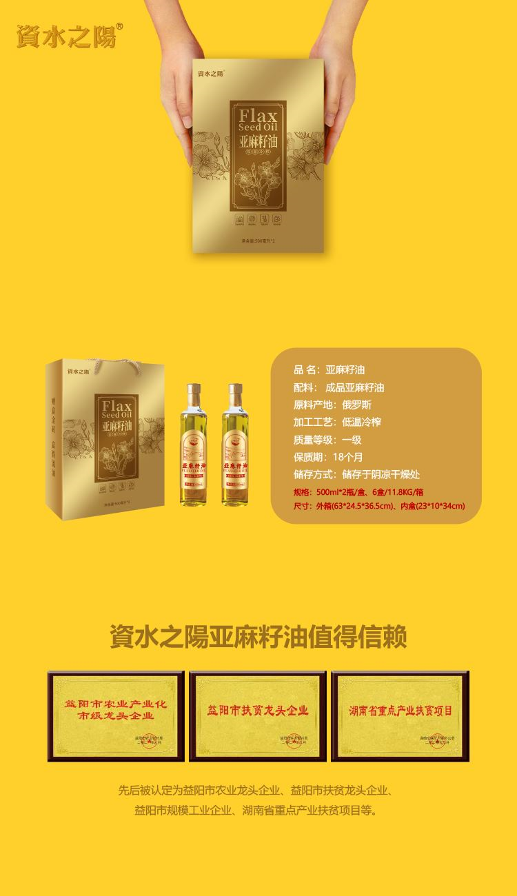 配置: 亚麻籽油500毫升*2瓶 尺寸: (内盒)23*10*34cm (外箱)63*24.5*36.5cm 规格: 6盒/11.8KG/箱