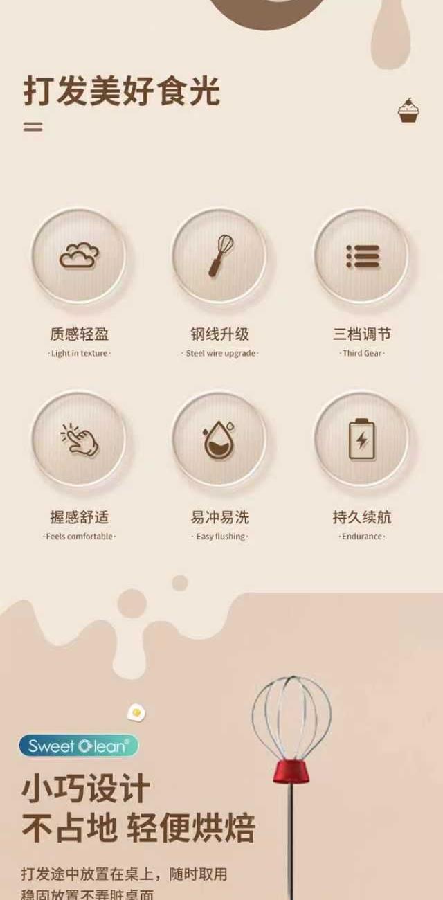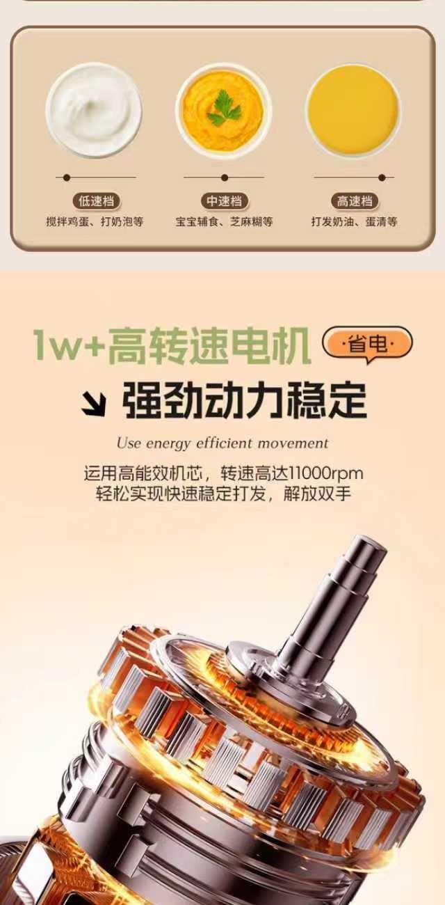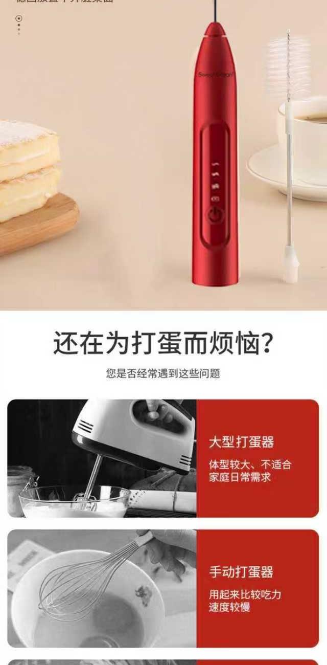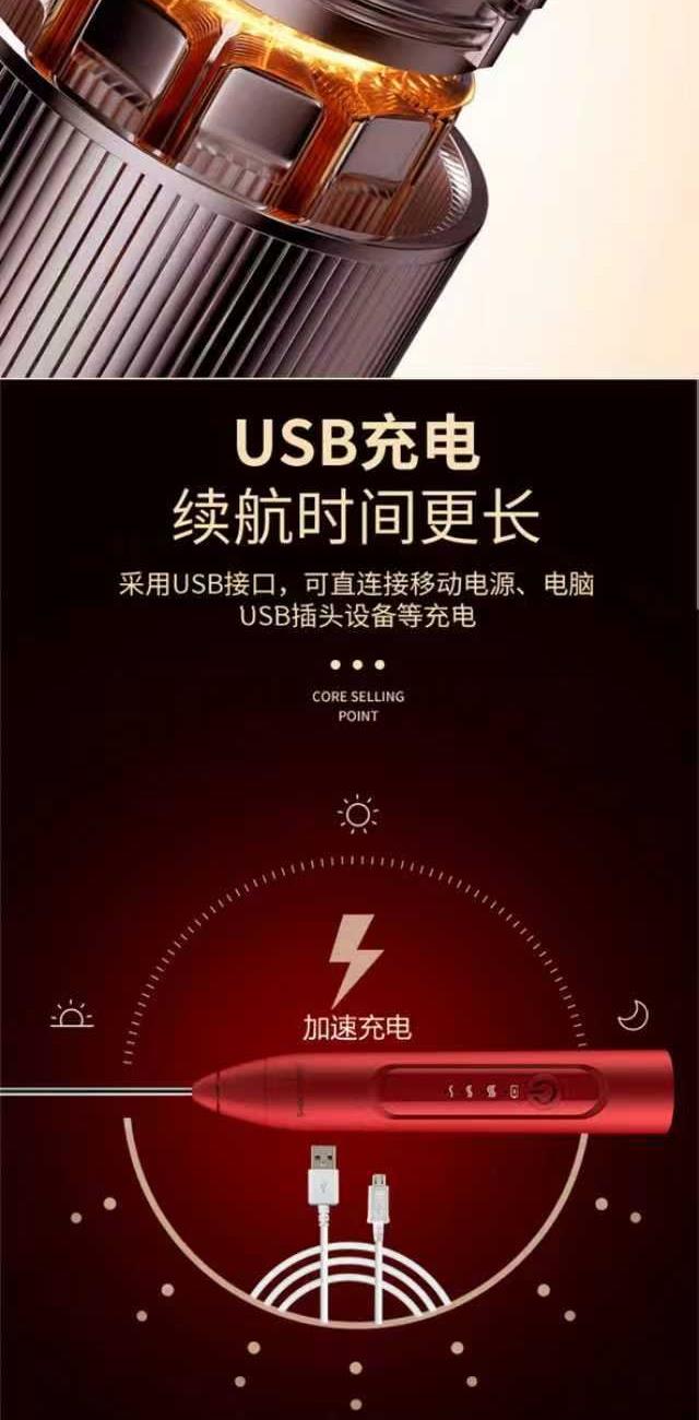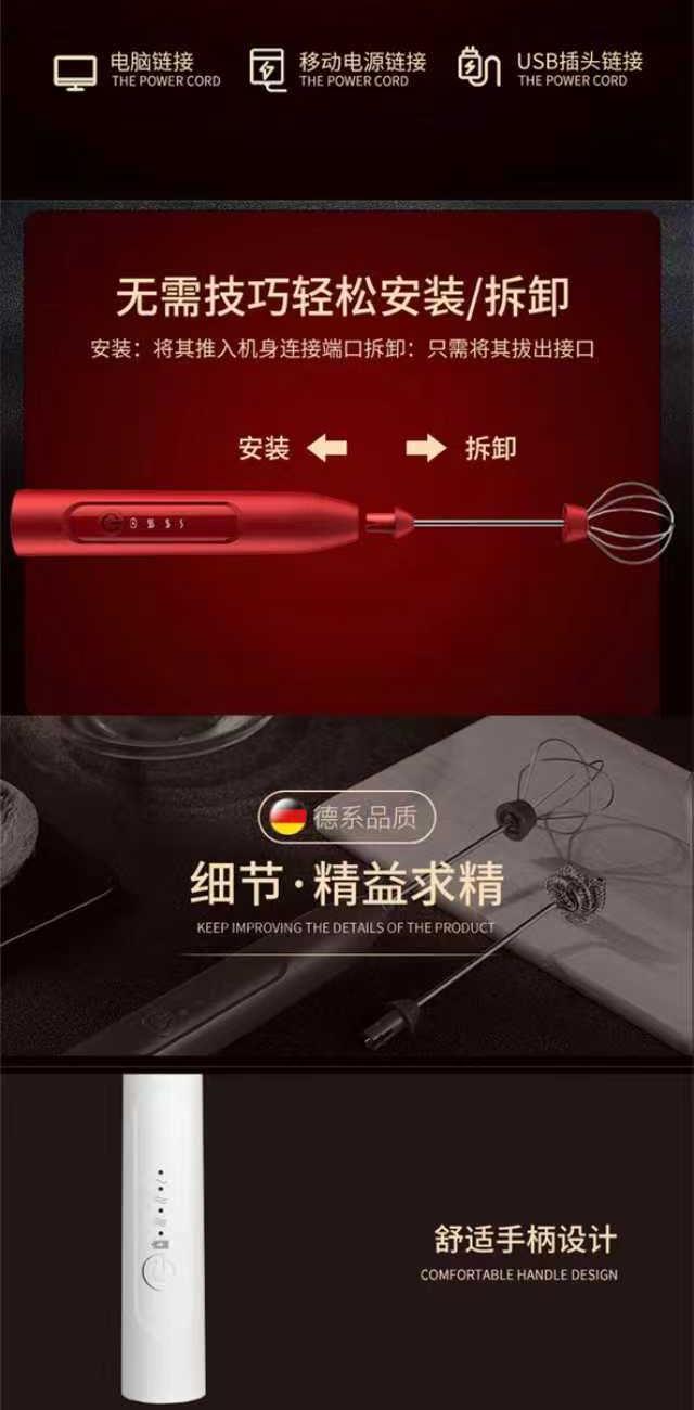 多功能便携打蛋器小型搅拌机,冲调,搅拌,大发样样精通,304不锈钢材质不易发霉,不易藏污,不掉纸屑。人性化设计无线设计,快速大发,三挡可调,无线设计摆脱电线约束,三挡可调匹配不同食材的大发,本挡力度可调,满足多种烘焙搅拌力度多种食材材质均匀大发。强劲马达涡旋机芯组动力十足,强劲动力。全铜打造负荷能力强效率更高,USB充电续航时间更长,可直接连接移动电源,电脑USB插头设备充电。静音运行低至30dB分贝,采用避震设计能够减少噪音打蛋不再吵闹。极易清洗一冲即净,无需技巧安装/拆卸,舒适手柄设计