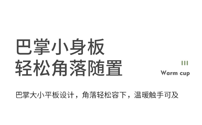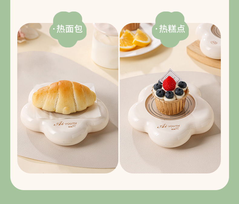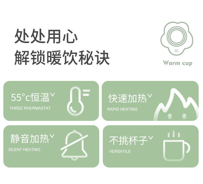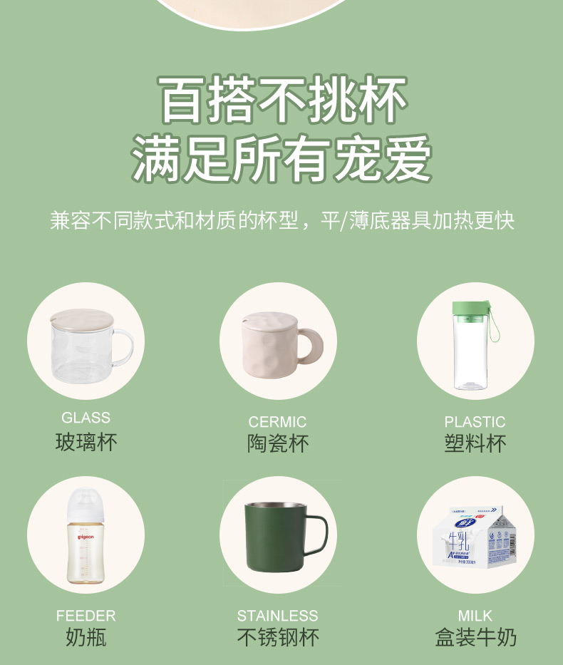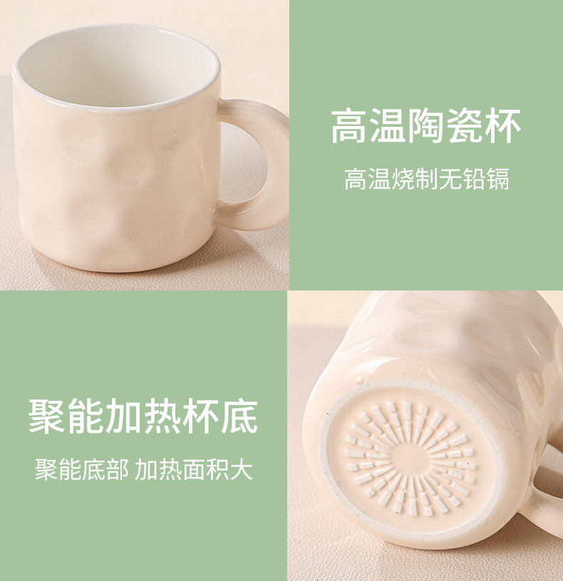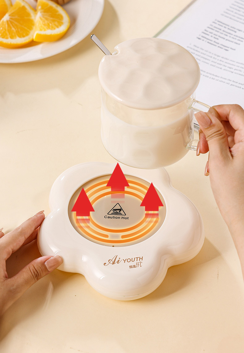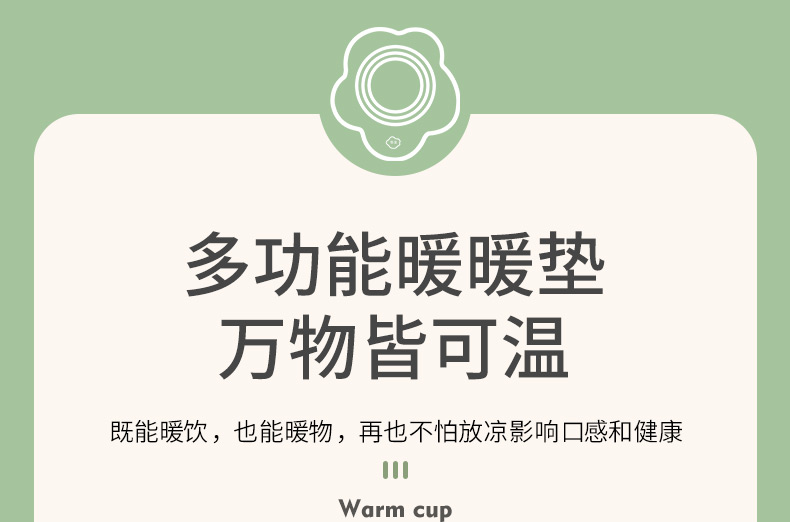 额定电压: 220V~ 额定频率:50Hz 额定功率: 16W 产品容量: 400ML 重 量: 0.8kg 颜 色 :奶油白 包装尺寸: 306*105*210mm 包装清单:陶瓷杯、不锈钢勺、重力感应恒温杯垫 主要材质:陶瓷 特色功能: 1.55℃智能控温,温暖近在手边 2.硅胶体发热,膜面板,整圈发热均匀 3.静音加热,不挑杯子,快速加热,多彩颜色 4.兼容不同款式和材质的杯型,平/薄底器具加热更快