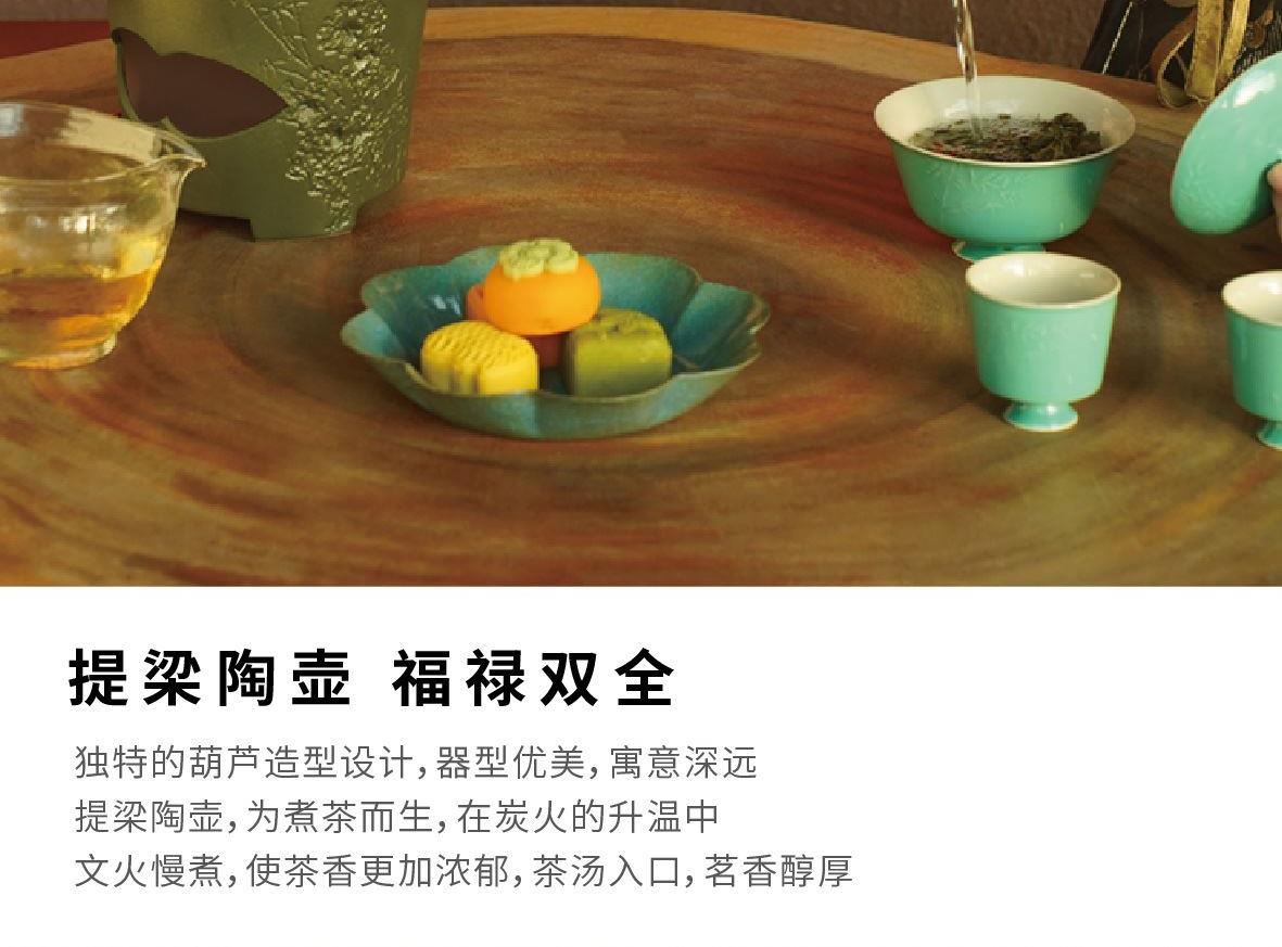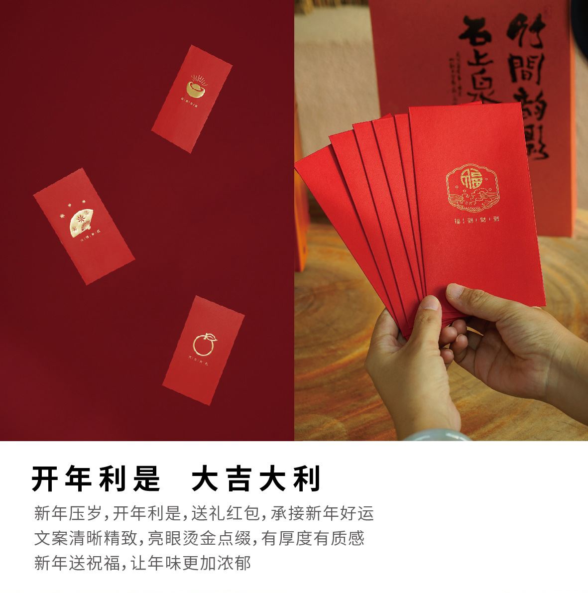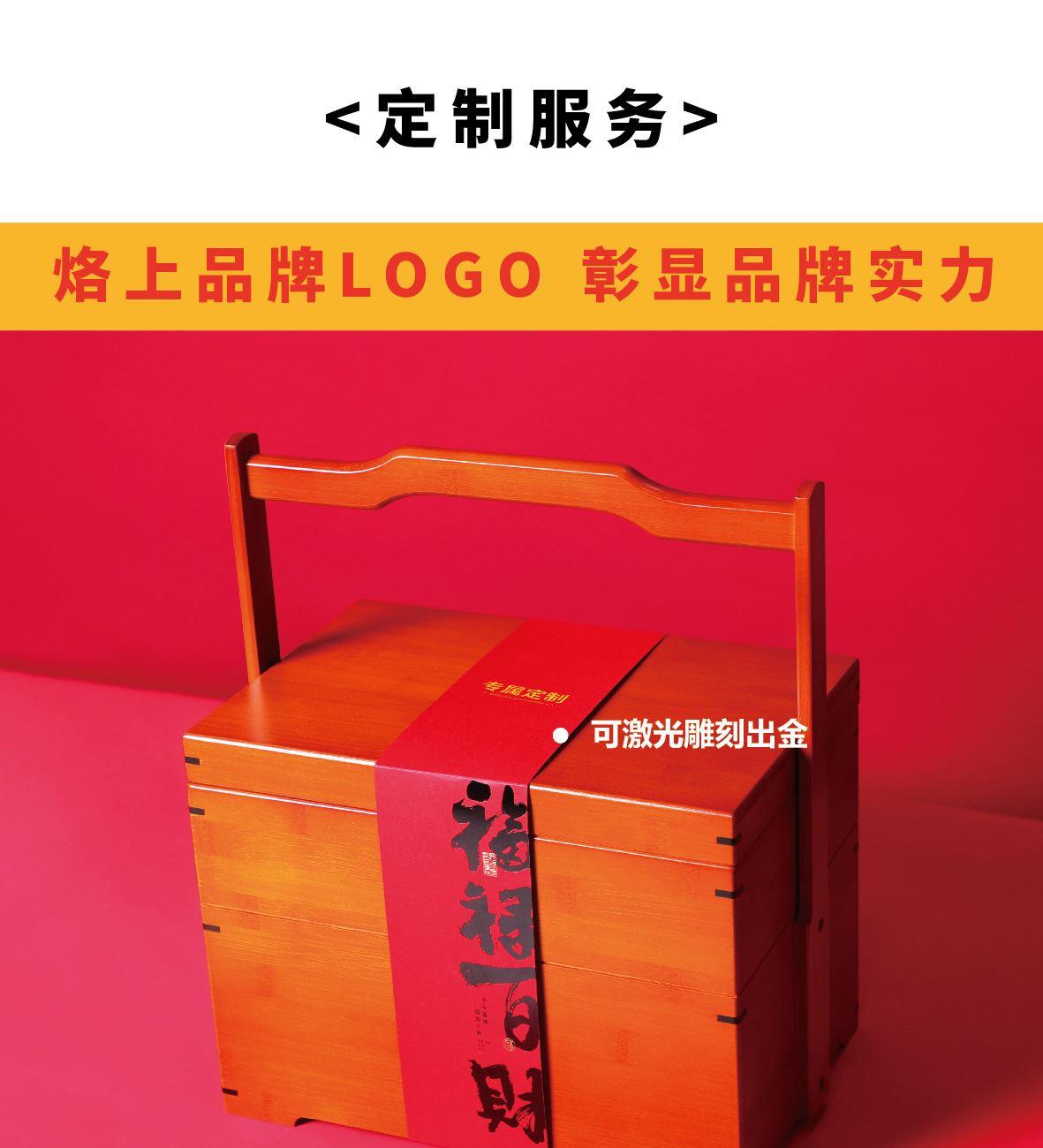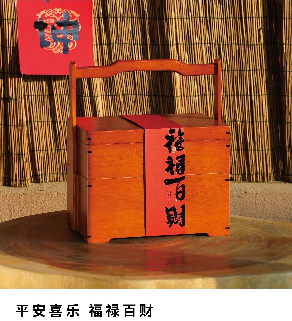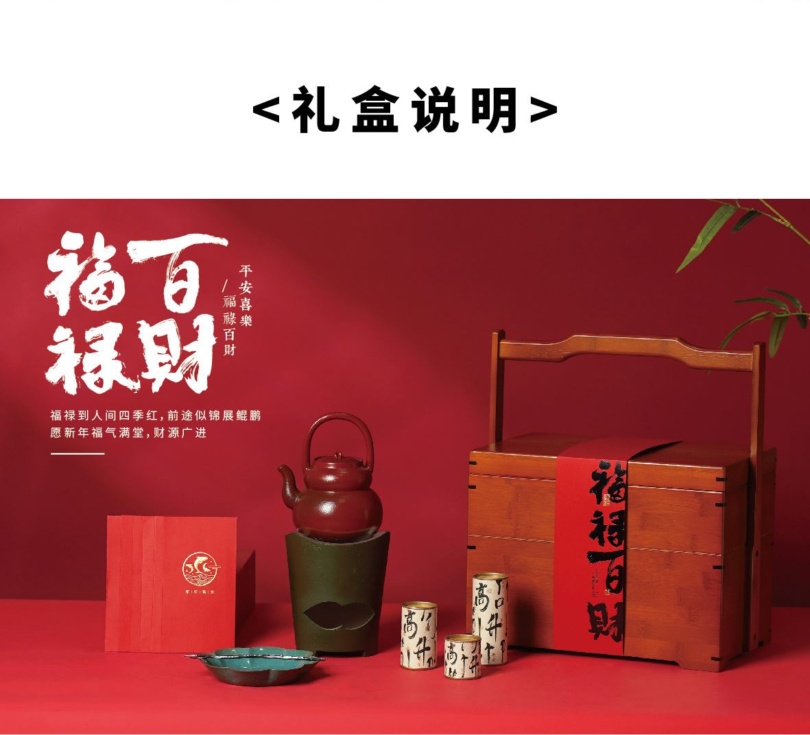 提篮尺寸:330*220*395mm 利是封尺寸:90*168mm 竹影炭火炉尺寸:120*120*142mm 竹节茶配置:6节(1节+2节+3节) 茶点盘尺寸:147*147*25mm 产品配置:手工竹制提篮*1 无纺布袋*1 节节高升层卡*1 福禄百财封套*1 利是封*6 竹节茶*3罐(6节) 福禄陶壶*1 竹影炭火炉*1 凤翎壶叉*1 陶瓷茶点盘*1