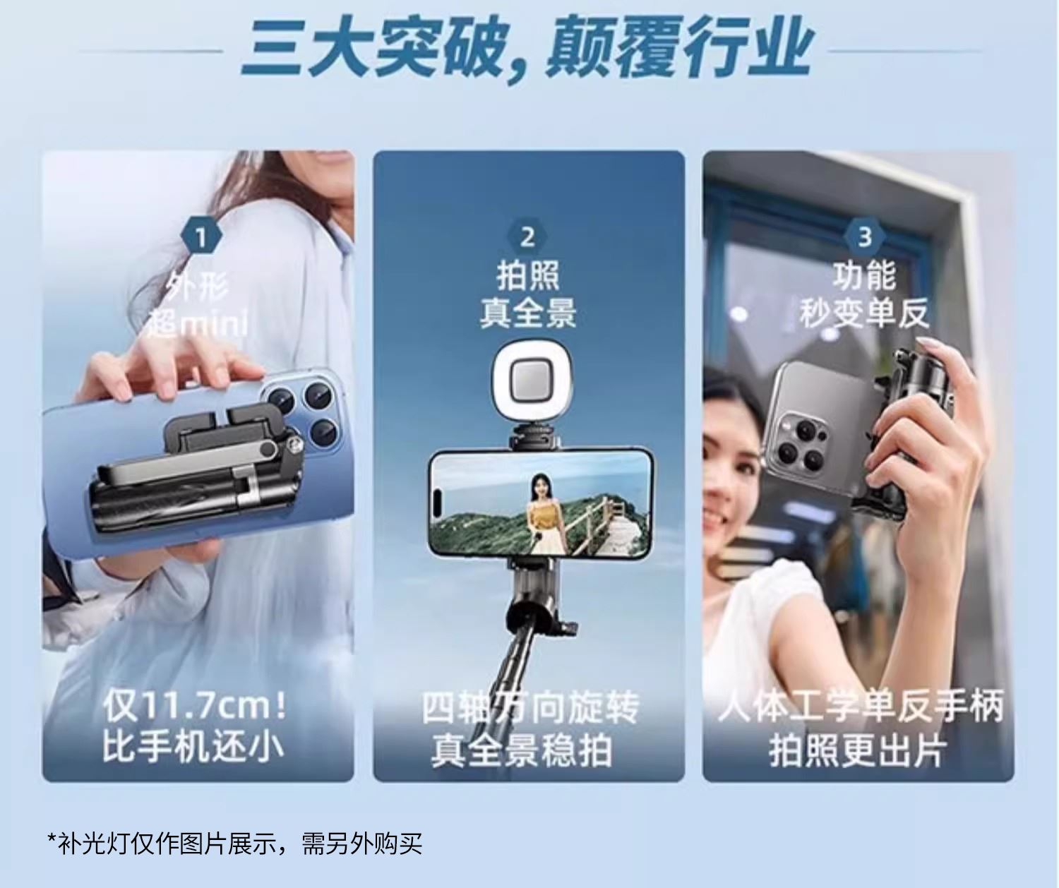 领臣Mini多功能自拍杆-白色LC-P15-4