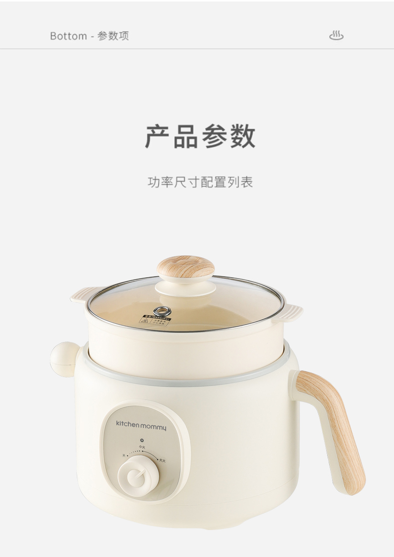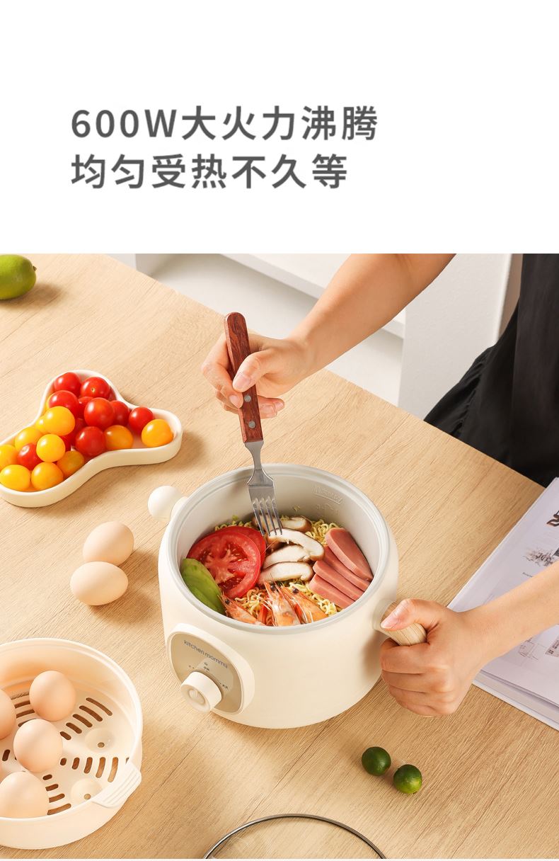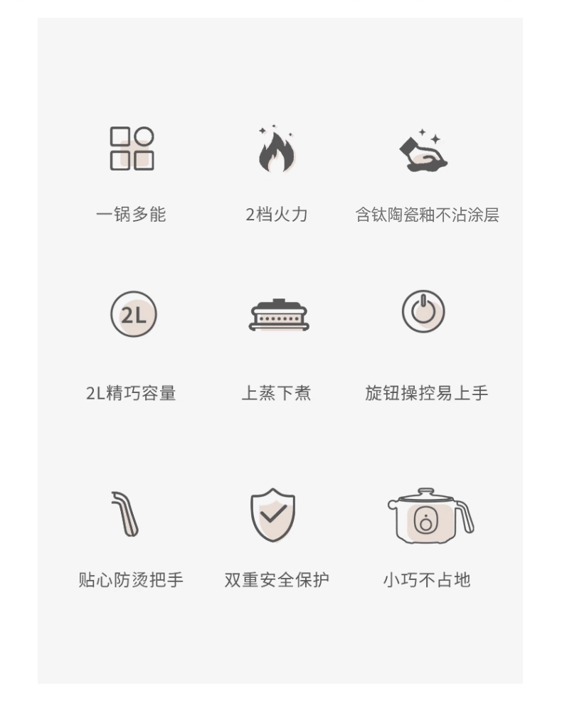 3、2L精巧容量,适用1-2人,上蒸下煮,烹饪更省时