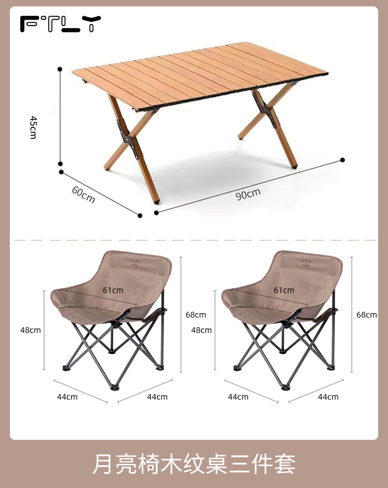 材质:600D双层牛津布 +镀锌钢管 商品颜色:茶松棕 商品规格:三件套(一桌两椅)/五件套(一桌四椅) 中桌尺寸:90*60*45cm 大桌尺寸:120*60*45cm 椅子尺寸:68*44*44cm 商品重量:7kg/12kg 需要三件套的联系我司业务人员