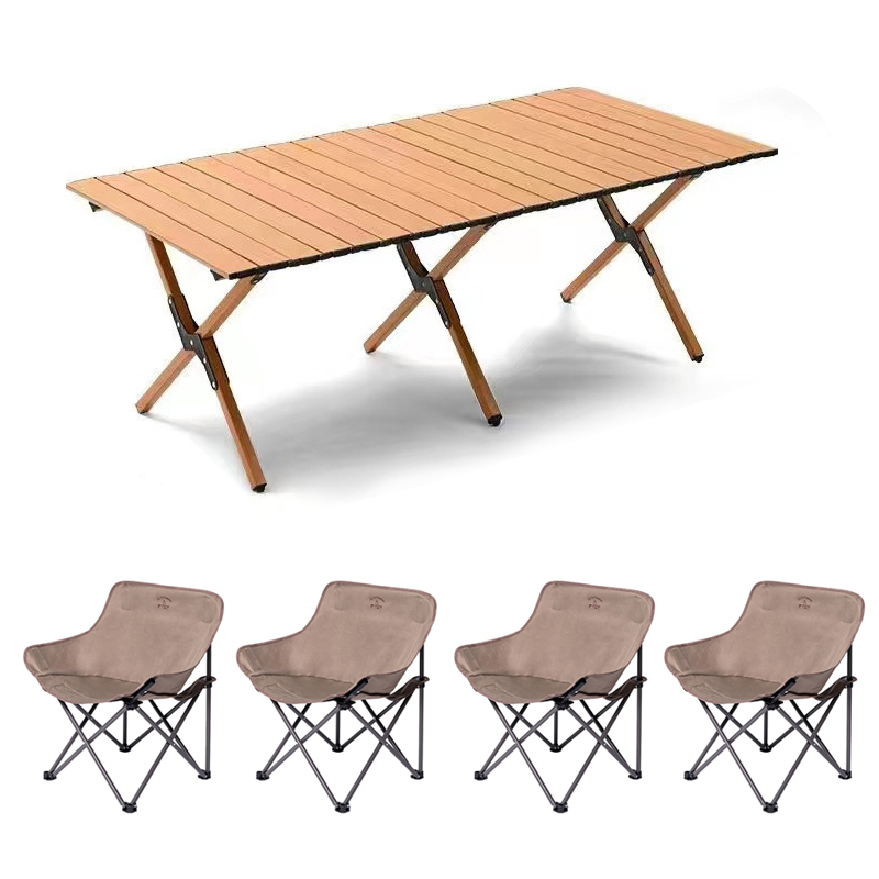FTLY飞图乐月亮椅木纹蛋卷桌长桌五件套ZDZY1802