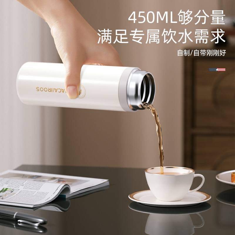 规 格:450ml 材 质:304不锈钢 产品净重:0.24kg 产品毛重:0.28kg 整箱重量:15.2kg 装 箱 数:50台/箱 健康材质内壁采用304不锈钢,食品级PP轻便杯盖; 真空保温双层真空杯,冷热两用,锁住温度,长效保温; 密封性能硅胶密封防漏盖,密封性好,防滴漏不漏水; 携带方便大小容量合适,居家办公、户外使用方便,随拿随走。