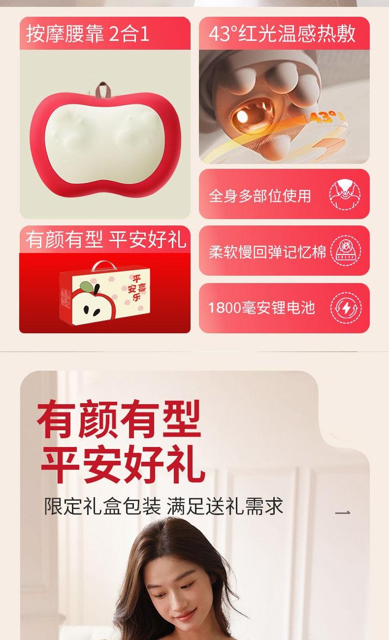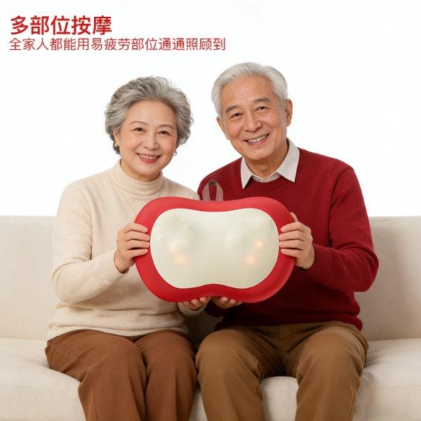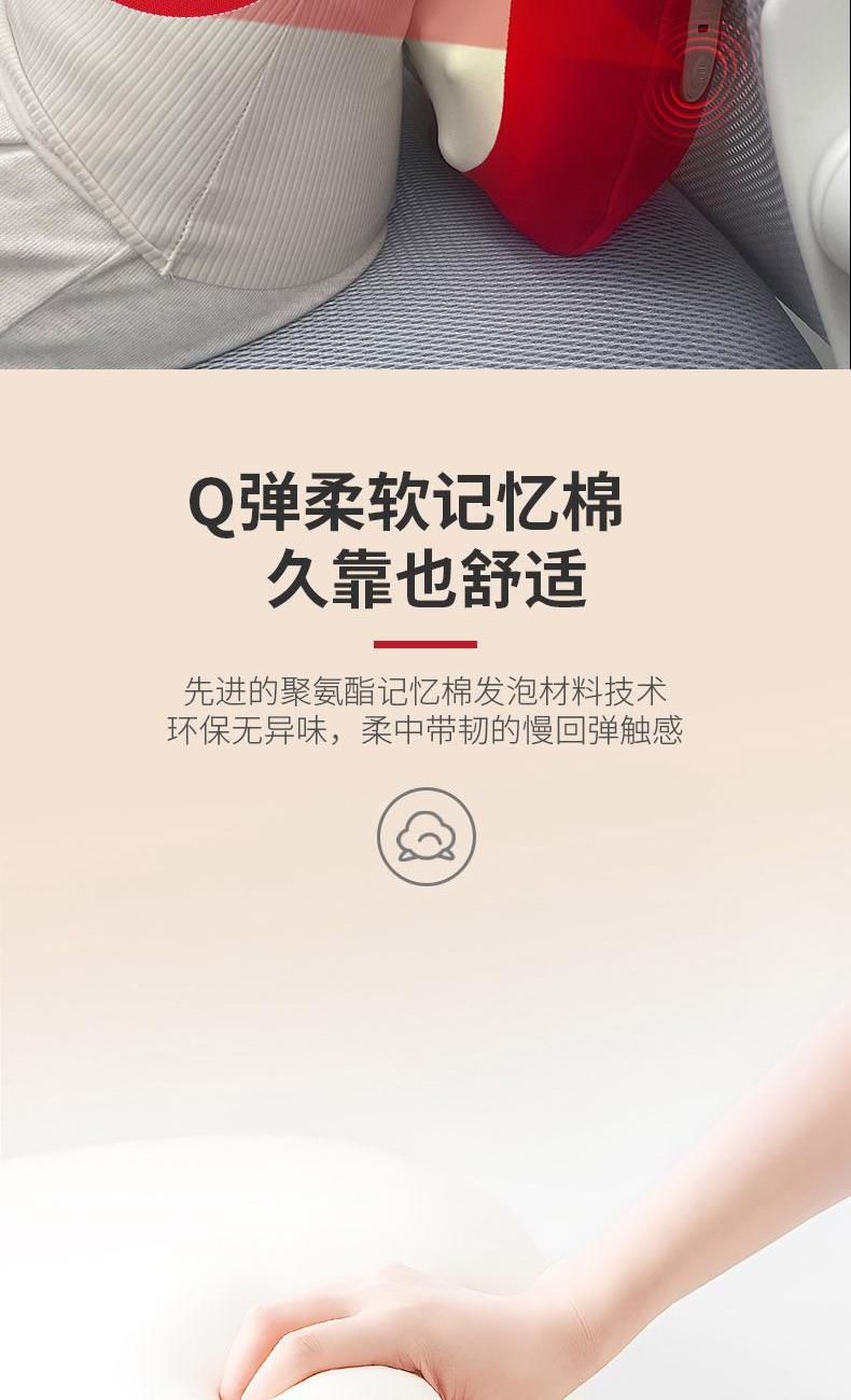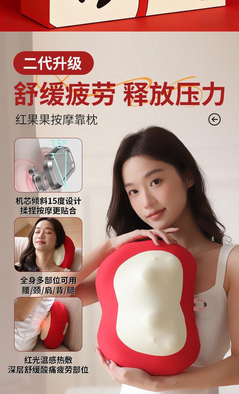 按摩体验类(直击痛点,模拟专业手感):15° 机芯倾斜设计,贴合人体生理弧度,直击按摩痛点,正转按压 + 反转揉捏,搭配三档力度,复刻老技师推拿手法,43° 红光温感热敷,深层舒缓酸痛疲劳,加速血液循环,全身多部位适配:腰 / 颈 / 肩 / 背 / 腿,一台满足全家需求,90KG 大承重,强劲顶揉不塌陷,按摩更到位