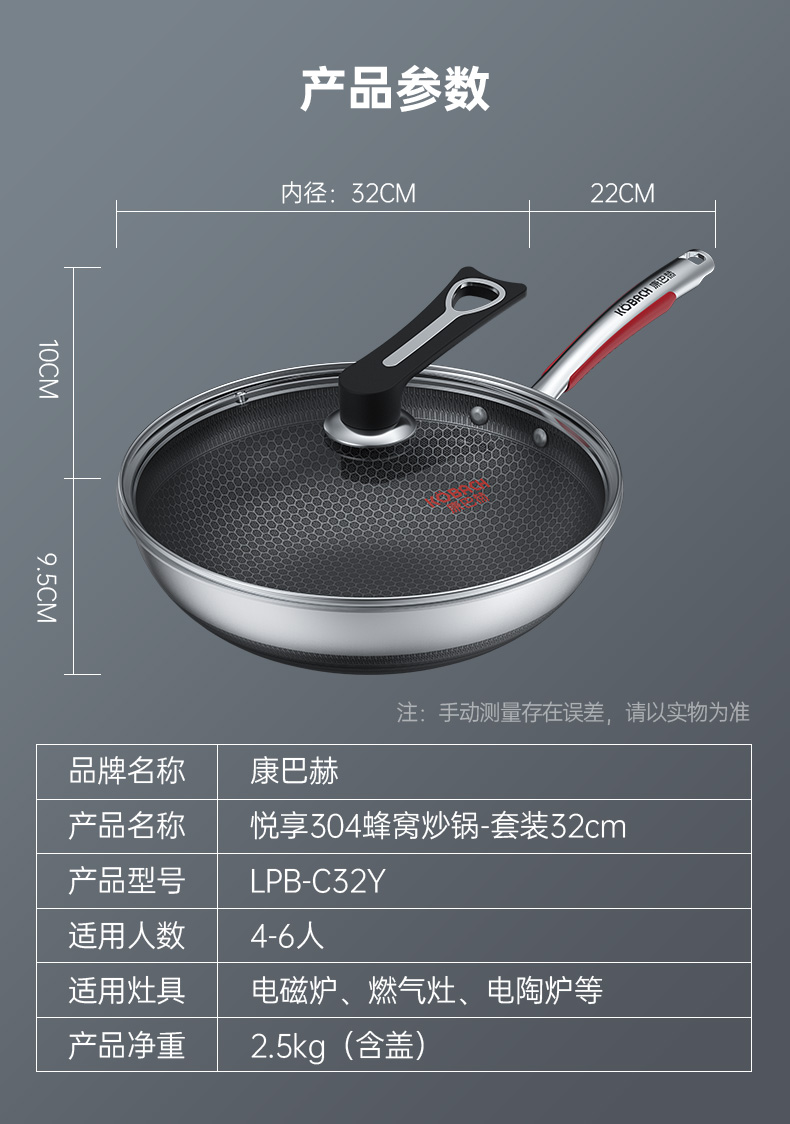 康巴赫-悦享304蜂窝炒锅32cmLPB-C32Y(双面屏)