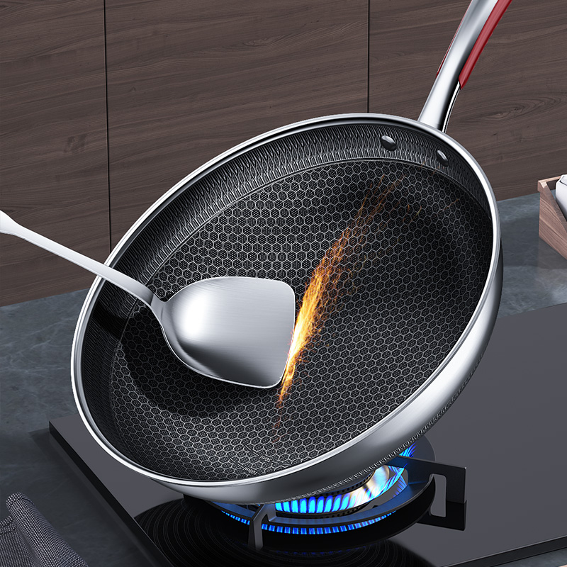 ◎锅内不易粘各种美食轻松做:蜂窝纹理覆盖,烹饪不易粘锅不易焦糊,煎鱼也能轻轻松松