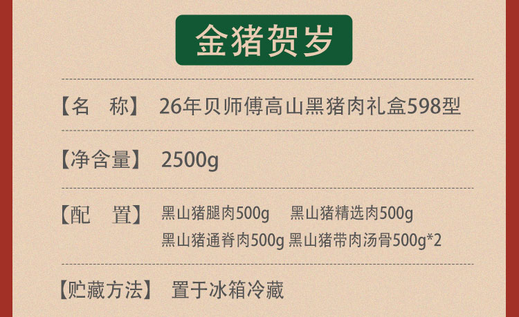 26年贝师傅高山黑猪肉礼盒598型-金猪贺岁