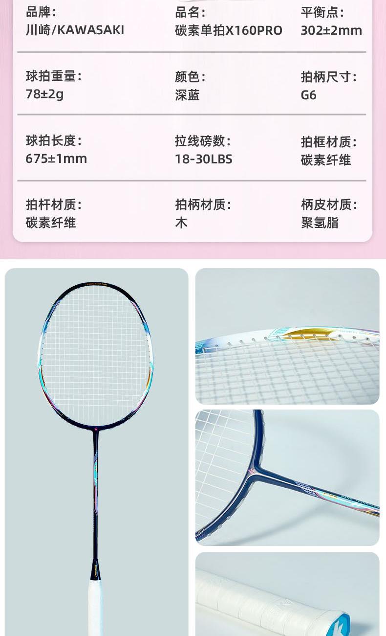 川崎羽毛球拍单拍X160-Pro深蓝色