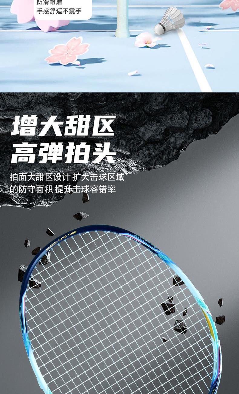 球拍长度:675+1MM 球拍重量:78+2g 拍柄尺寸:G6 承受磅数:18-30LBS 产品净重:0.38kg 产品毛重:0.45kg 平衡点:298±mm 拍框材质:碳素纤维 材质:碳素纤维 中杆硬度:适中 产品尺寸:71*2*23cm 包装尺寸:75cm*7cm*27cm 1.碳素纤维材质拍框,轻盈便捷 2.平衡点适中,从容接球,攻守兼备 3.立体破风框,减小风阻的 4.一体成型中框,强韧有力 5.反应速度快,打感更轻弹