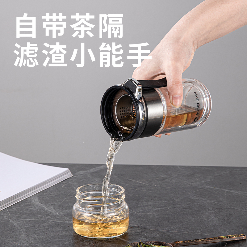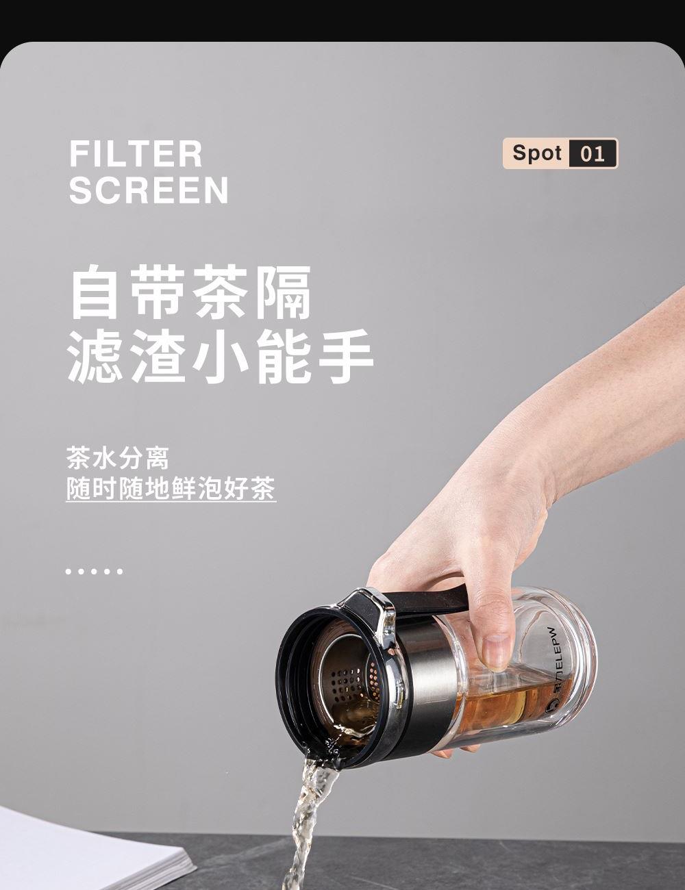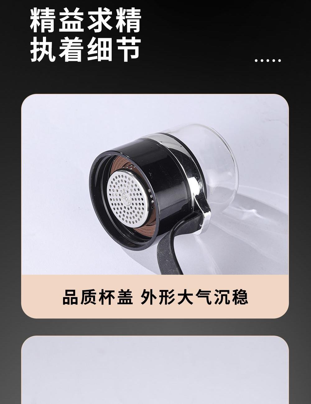 颜色:黑色 本色 材质:304不锈钢滤网,喝茶不吐叶。 不锈钢杯盖,商务外观,更适合定制。 圆润加厚一体成型烧制底,高硼硅茶仓设计,硅胶提绳,出行方便。 包装:单瓦盒