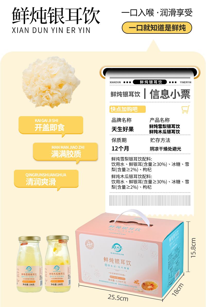 天生好果鲜炖银耳饮1188款 保质期:12个月