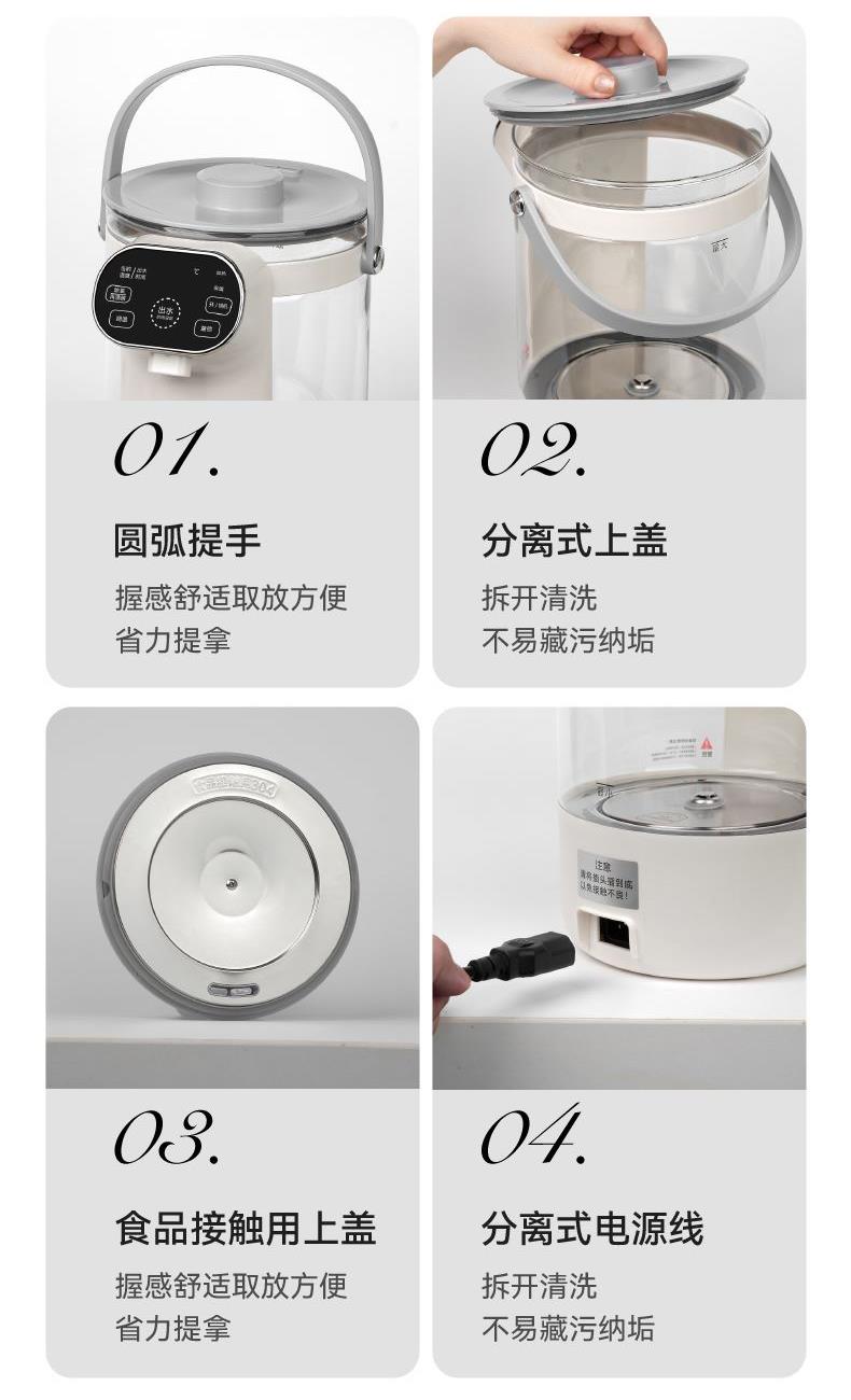 产品颜色:复古白 产品材质:PP+高硼硅玻璃 额定电压:220V~ 额定频率:50Hz 额定容量:3L 额定功率:800W 产品净重:1.3kg 产品毛重:1.6kg 产品尺寸:180*190*280mm 内箱尺寸:330*215*265mm 外箱尺寸:525*440*680mm 产品清单:主机*1/电源线*1/说明书*1