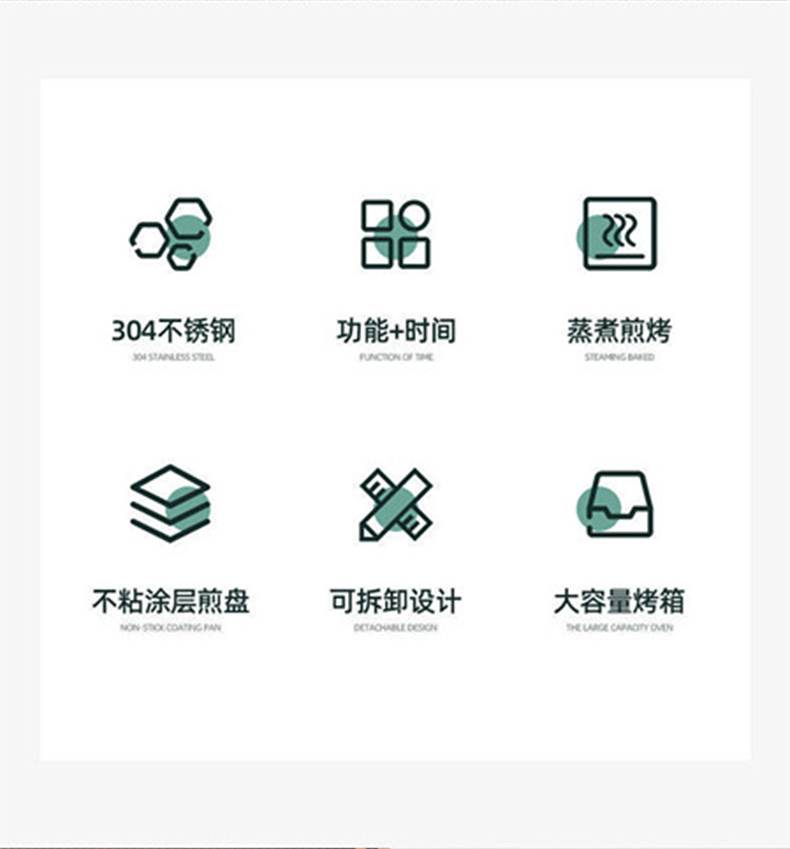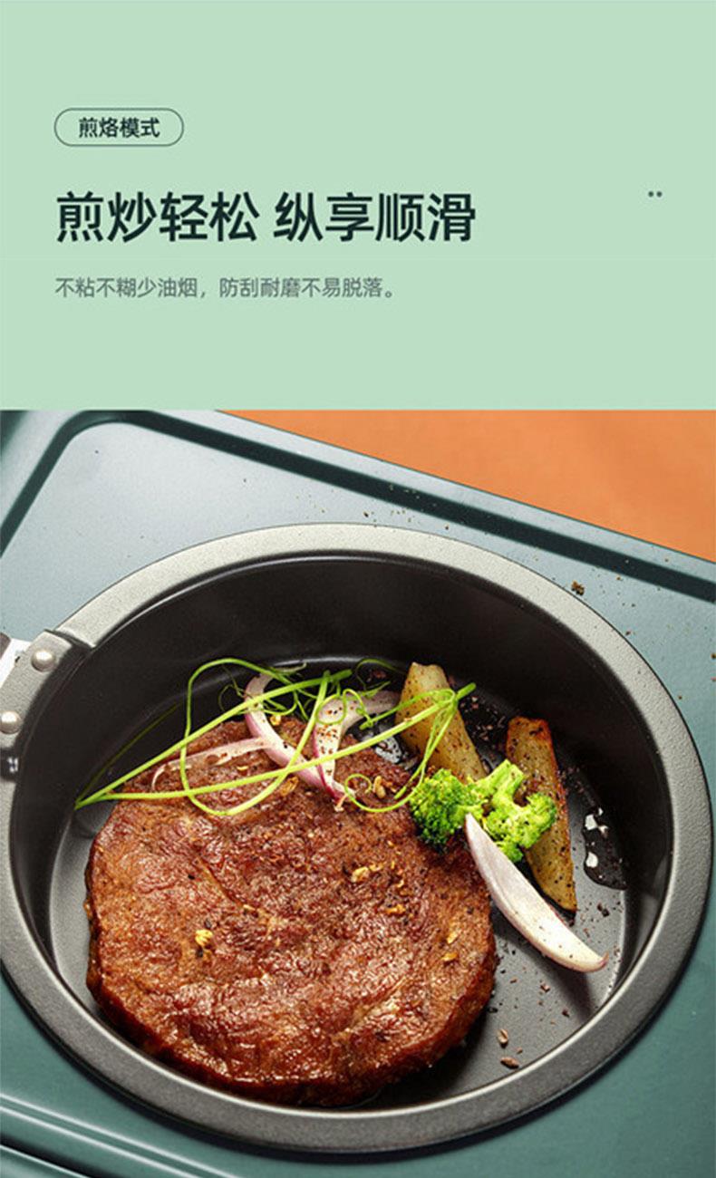 额定电压:220V~50Hz 产品容量:8L 额定功率:1600W 产品净量:3.6Kg 产品尺寸:430*270*230mm 蒸烤煎烙三位一体,一锅搞定全家三餐 煎煮蒸烤烙全适配,百变美食一键解锁 多功能独立控温,小白也能轻松下厨 304 不锈钢锅体,食品级材质更安心 食品级不粘涂层,烹饪无负担更健康 健康材质护航,每一口都吃得放心 清新高颜机身,百搭各种家装风格