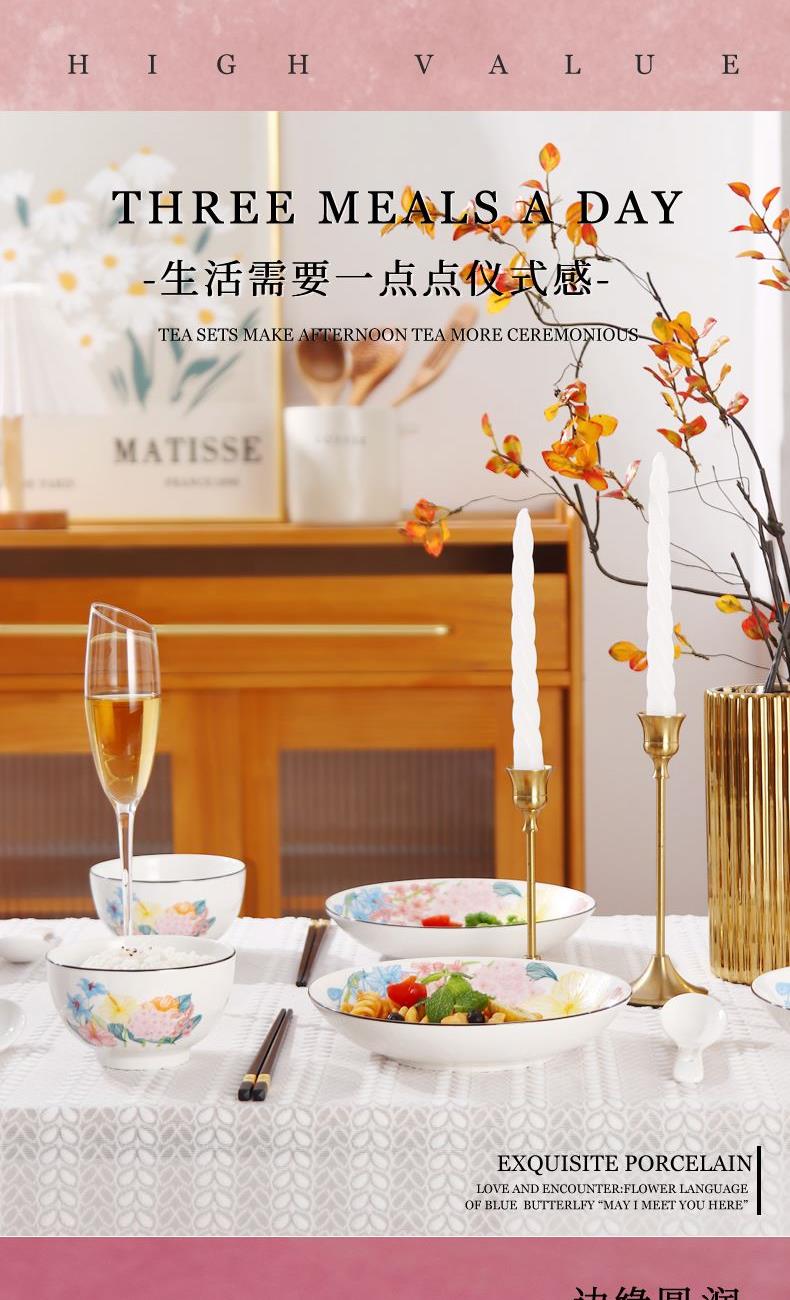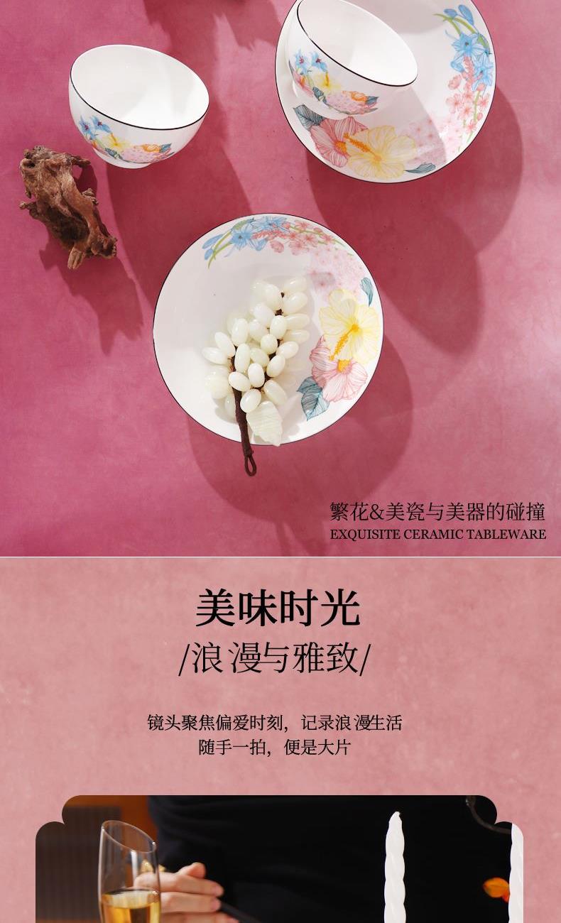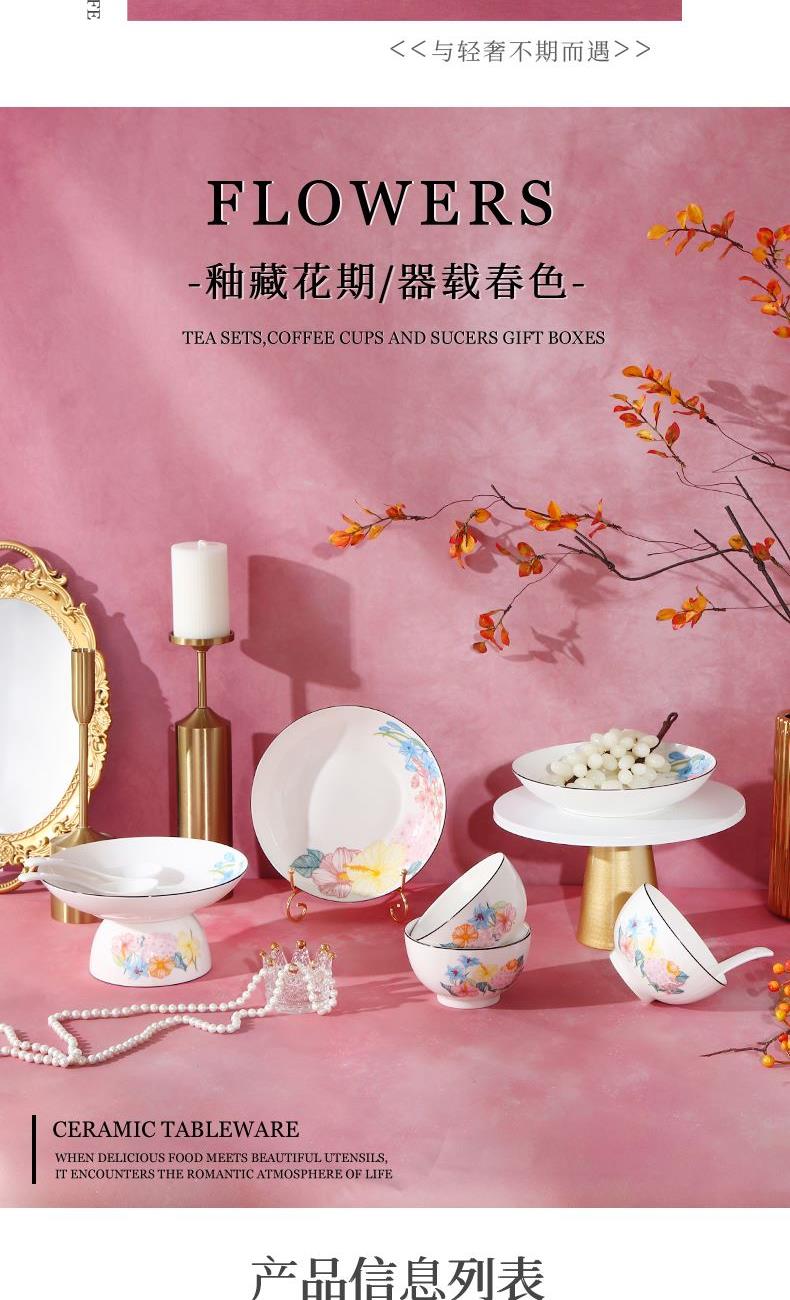 产品组成:8碗+6盘+8勺+8彩盒+1礼品袋 产品材质:低骨瓷 产品工艺:印花+素烧+釉下彩 产品规格:4.5英寸碗, 7.5英寸深盘,三弯小勺 包装尺寸:37x23x30cm 外箱尺寸:75x46x28cm