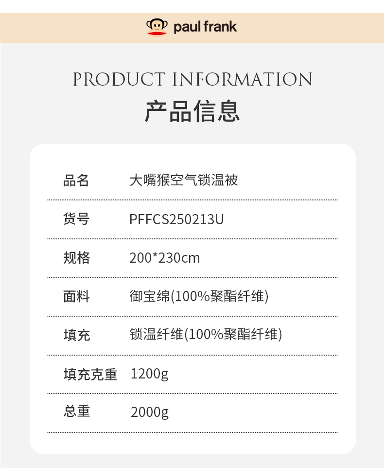 大嘴猴空气锁温被200×230cm(2000g)