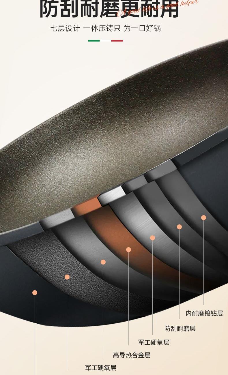 规格:20cm 材质:铝合金 单个尺寸:350*285*125(20cm) 1、95万次超耐磨不粘 2、五芯一体仿压铸工艺 3、一款含钻的不粘锅 4、军工硬氧强化、耐磨、耐腐蚀、抗酸碱。