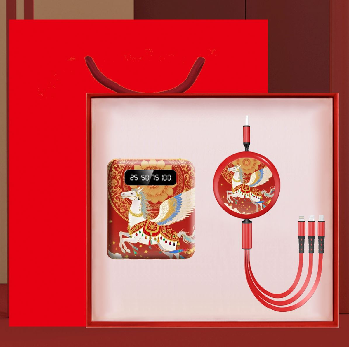黛悦马年开门红轻装礼盒移动电源快充数据线礼盒现货带3c