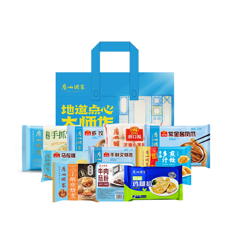 中华粤菜标杆 无需茶楼排队,在家轻松复刻地道广式饮茶体验 省心、放心和正宗的味道。 礼盒尺寸:42.5*29.5*26.5cm 内容物:虾饺(160g) 牛肉肠粉(185g) 手制叉烧包(337.5g) 三丁纸皮烧麦(240g) 玉米猪肉多汁煎饺(300g) 原味鸡腿扒 (200g) 葱香手抓饼(450g) 马拉糕(360g) 紫金酱凤爪(250g) 叉烧小笼包(300g)