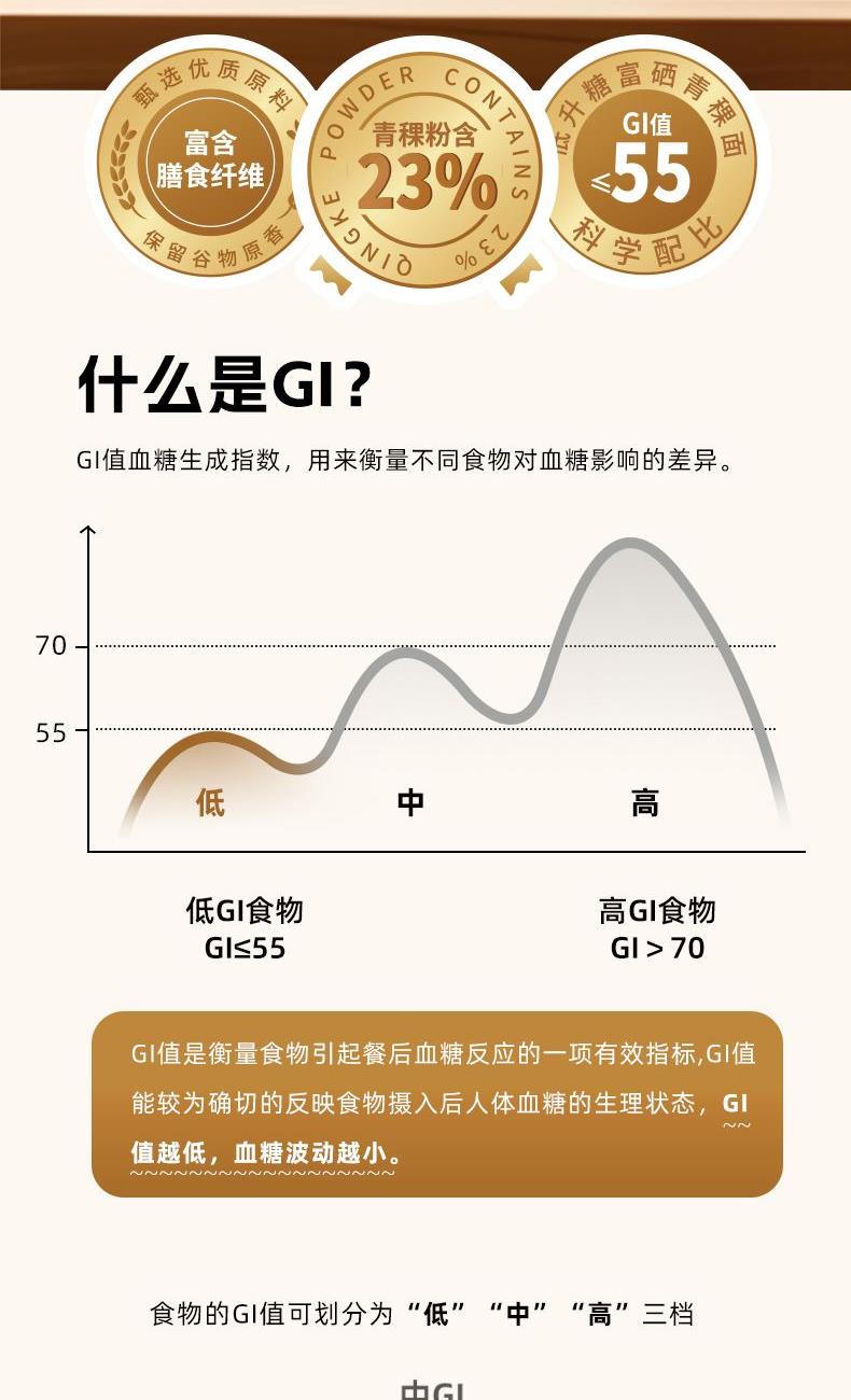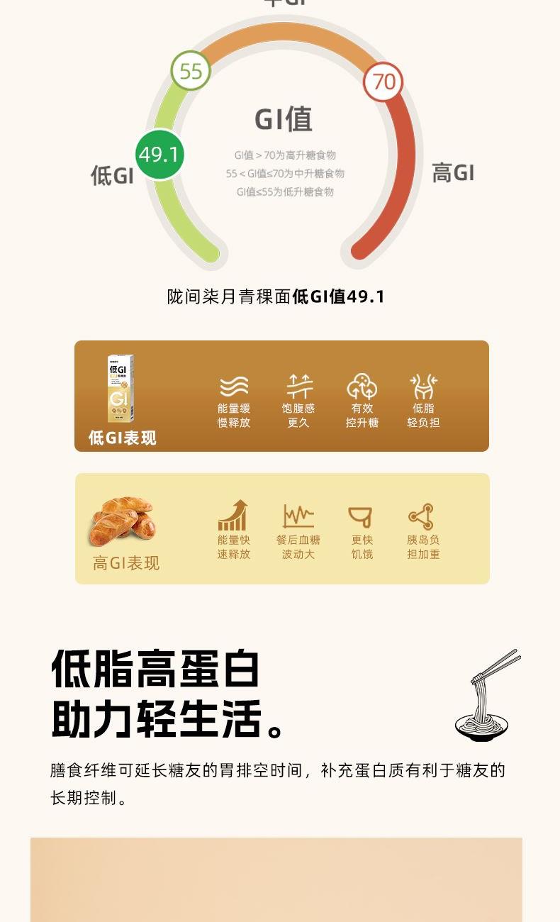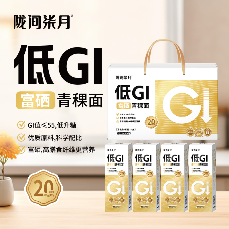 低GI富硒青稞面480g*4盒 尺 寸:370×55×280mm 1、GI值≤55,低升糖,高饱腹,更抗饿; 2、优质原料,科学配比,守护你的碳水快乐; 3、富硒,高膳食纤维更营养。