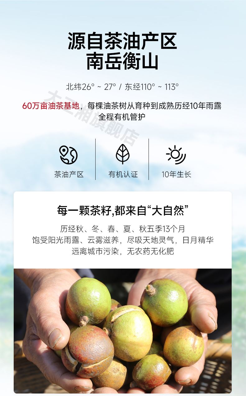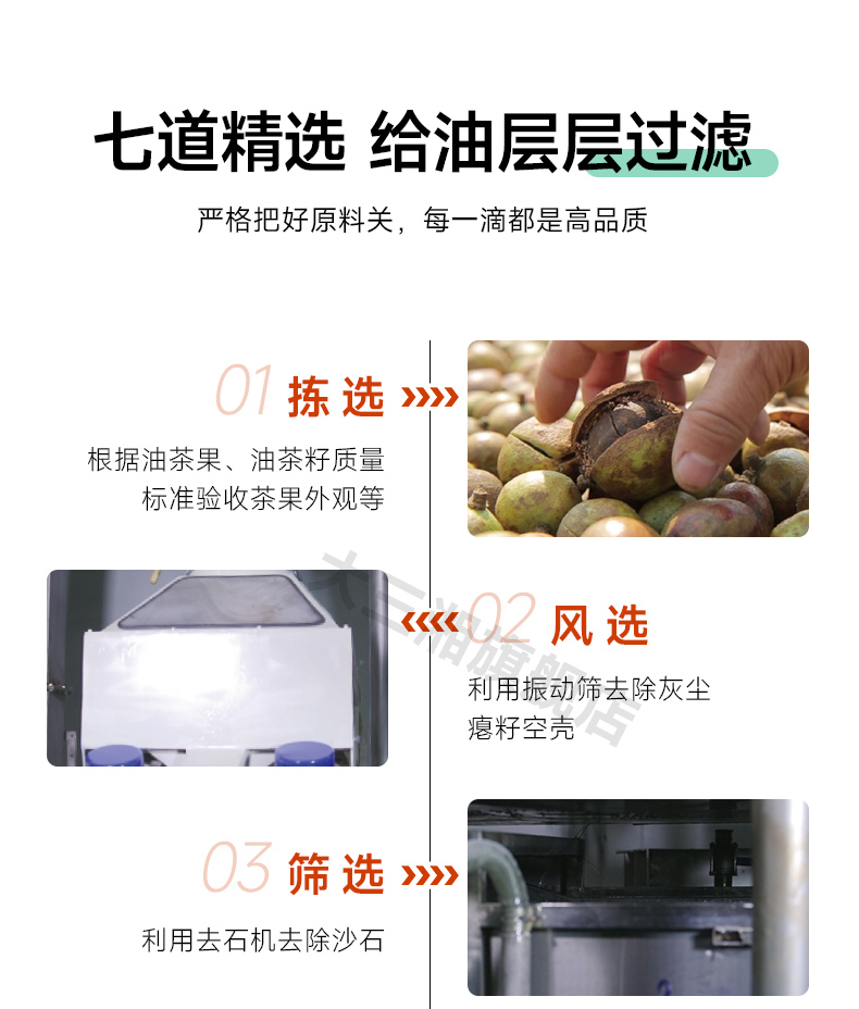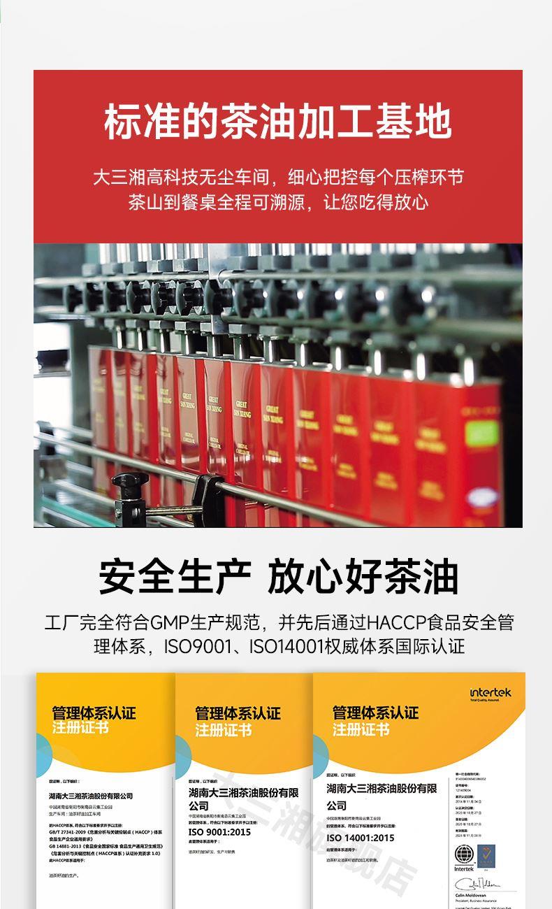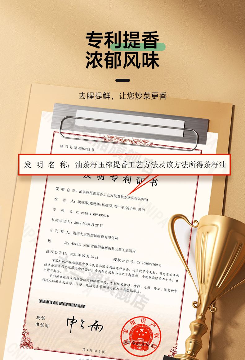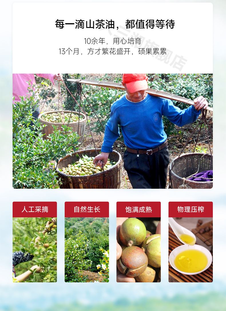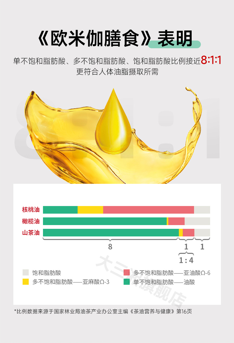 1、浓香纯正,风味浓郁,不止是土榨坊的味道 自创风味浓郁的浓香山茶油技术,将茶油中特有的芳香气味封存在茶油里。 2、230 ℃高烟点 热锅下油味更浓 230°的高烟点,符合中国人的烹饪习惯,高温烹饪更能激发浓香茶油香味,且炒菜少有油烟,减少油烟危害。 3、荤菜好搭档 入味不腻 茶油分子小,渗透力强,能够激发食材原有风味,而且清爽不油腻,尤其适合做荤菜。 新中国风铁罐包装,更搭配