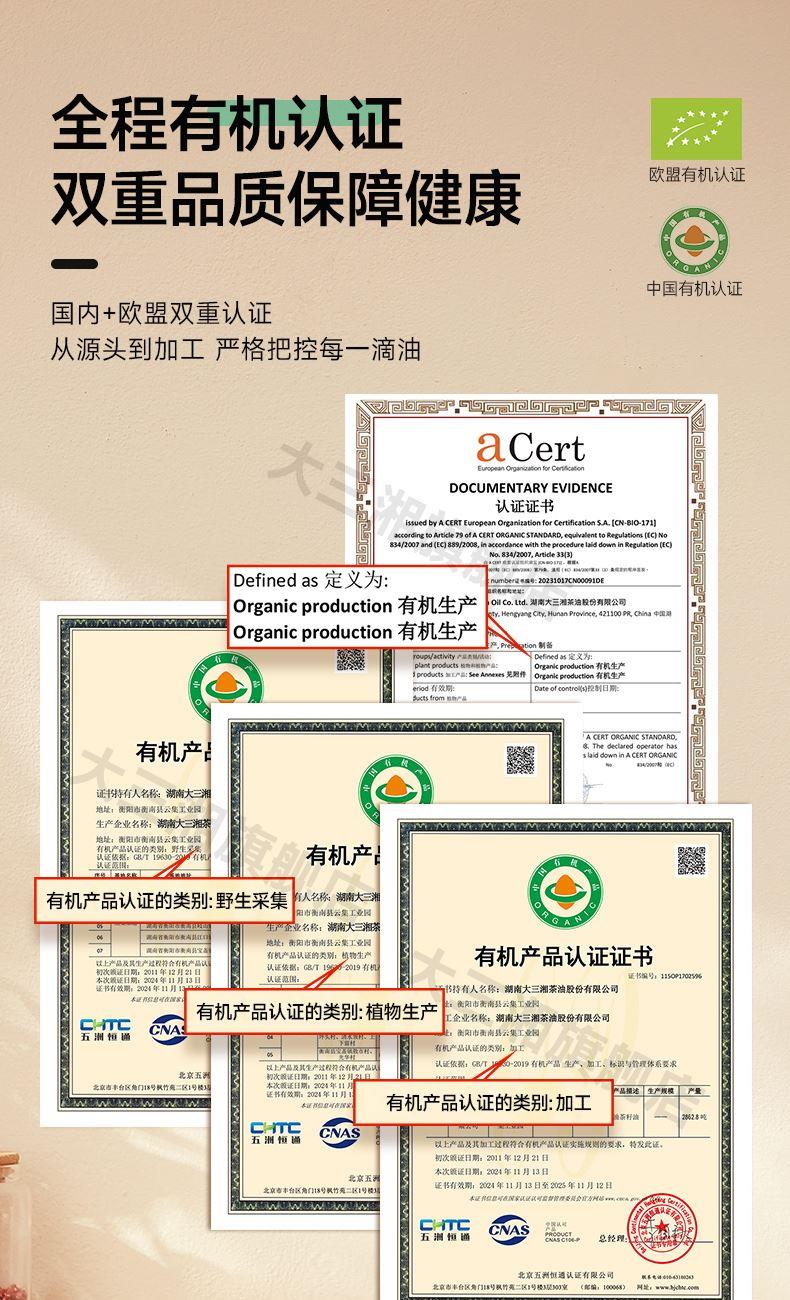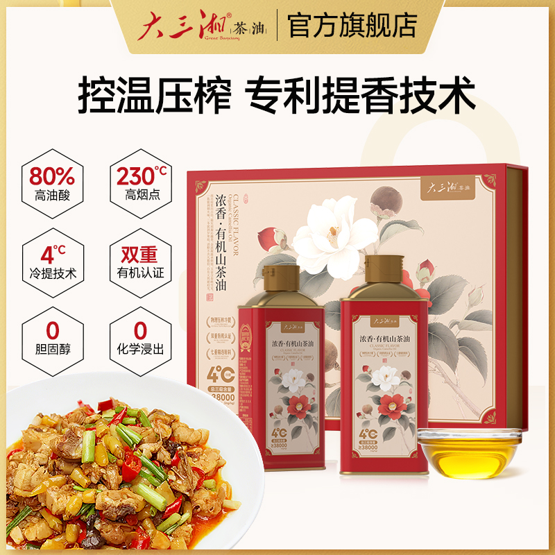 大三湘浓香山茶油500ml*2双支(铁罐)礼盒