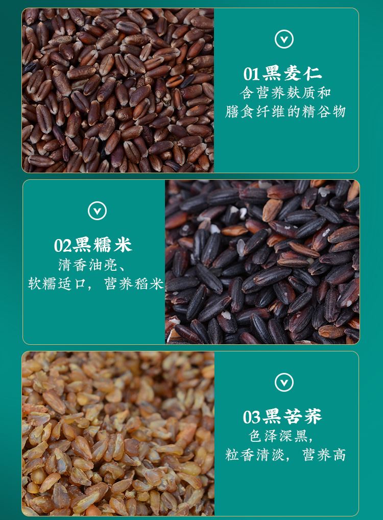 条 码:6972761600581 规 格:2kg,250g/袋*8 包 装:抽真空 配 置:黑豆、黑麦仁、黑糯米 黑苦荞、黑米、黑小米 各1袋,黑金粥2袋 盒尺寸:39cm*9.5cm*28.5cm 箱重量:14.7kg 6盒 箱尺寸:60*40*30(0.072方)