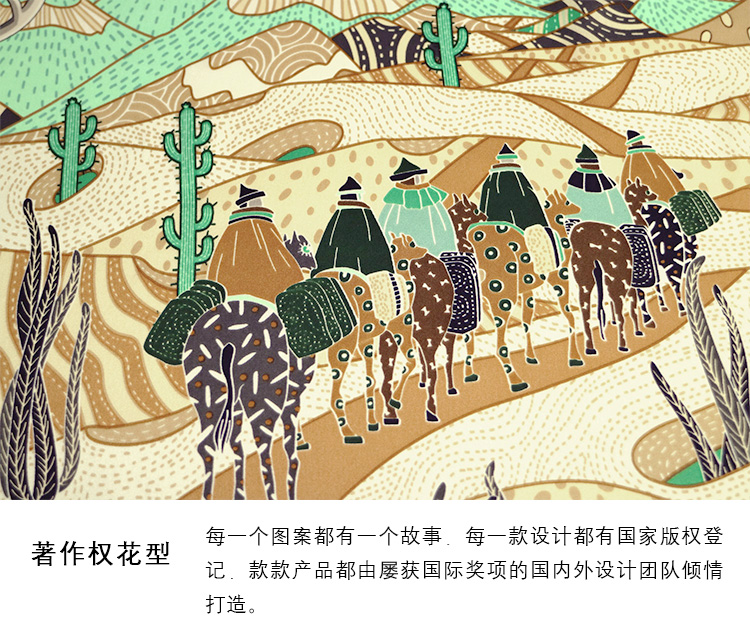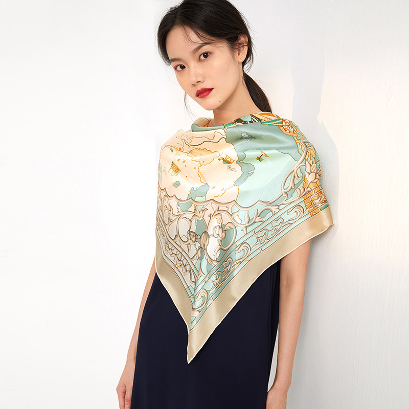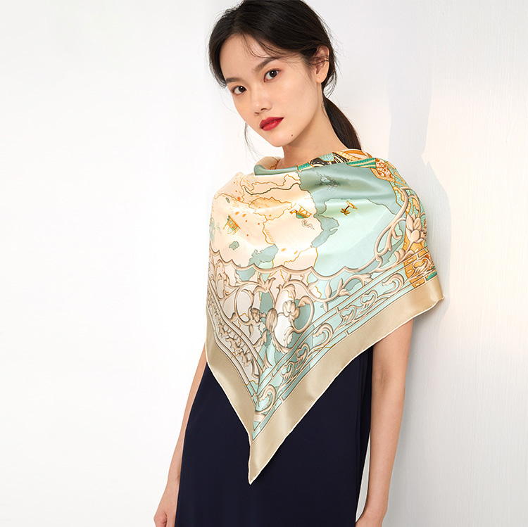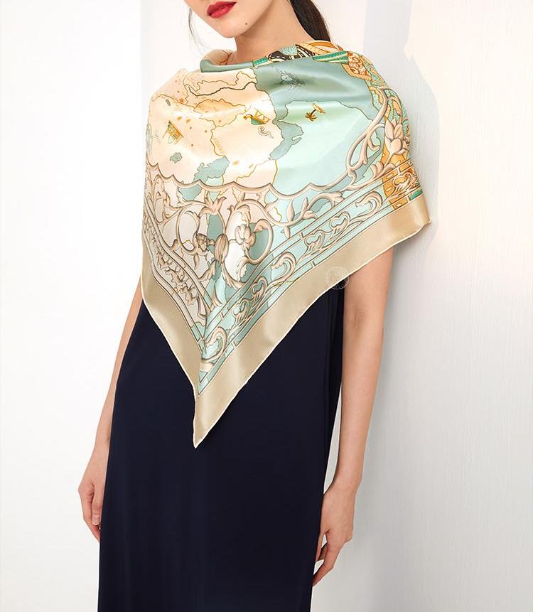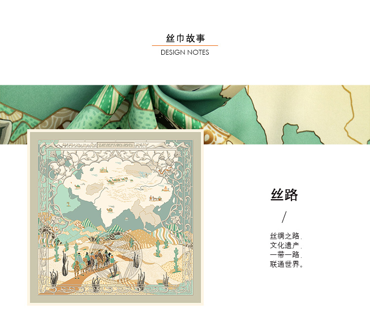 旅行 户外 真丝大方巾 材质:桑蚕丝 风格:中国风 民族风四季通用 丝绸之路文化遗产-带一路联通世界 规格:90*90CM真丝素绉缎 手工台版印染 曙光卷边 礼盒包装
