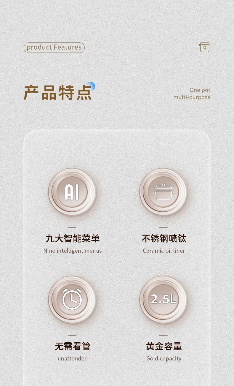 4、2.5L黄金比例容量,满足2-4人食用