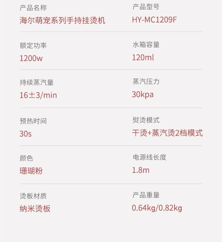 海尔【小红花套系】喵星人手持挂烫机HY-MC1209F