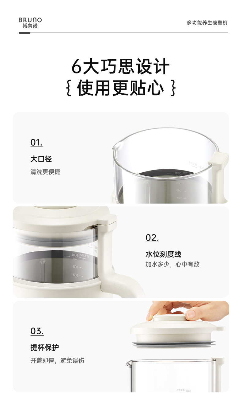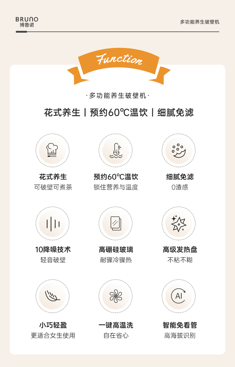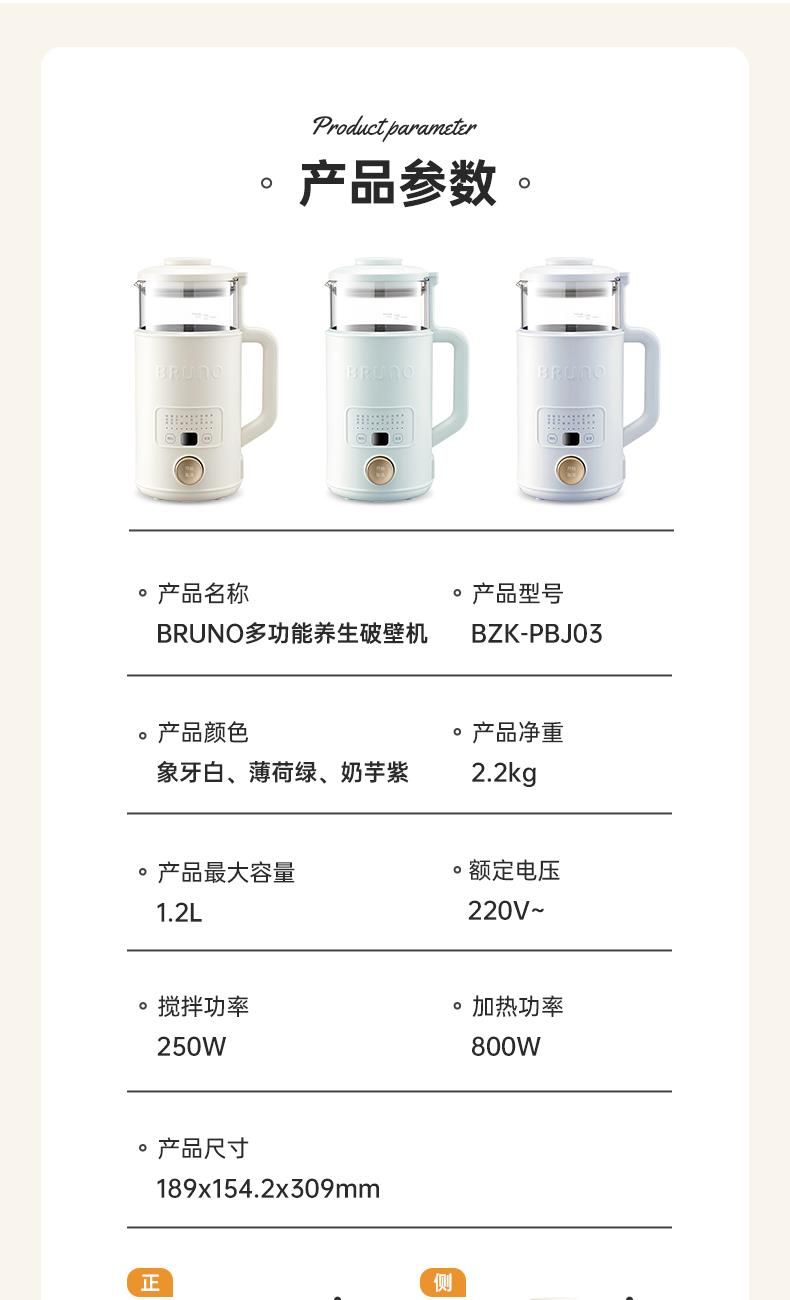 BRUNO静音多功能破壁机茶漏款BZK-PBJ03-XP01