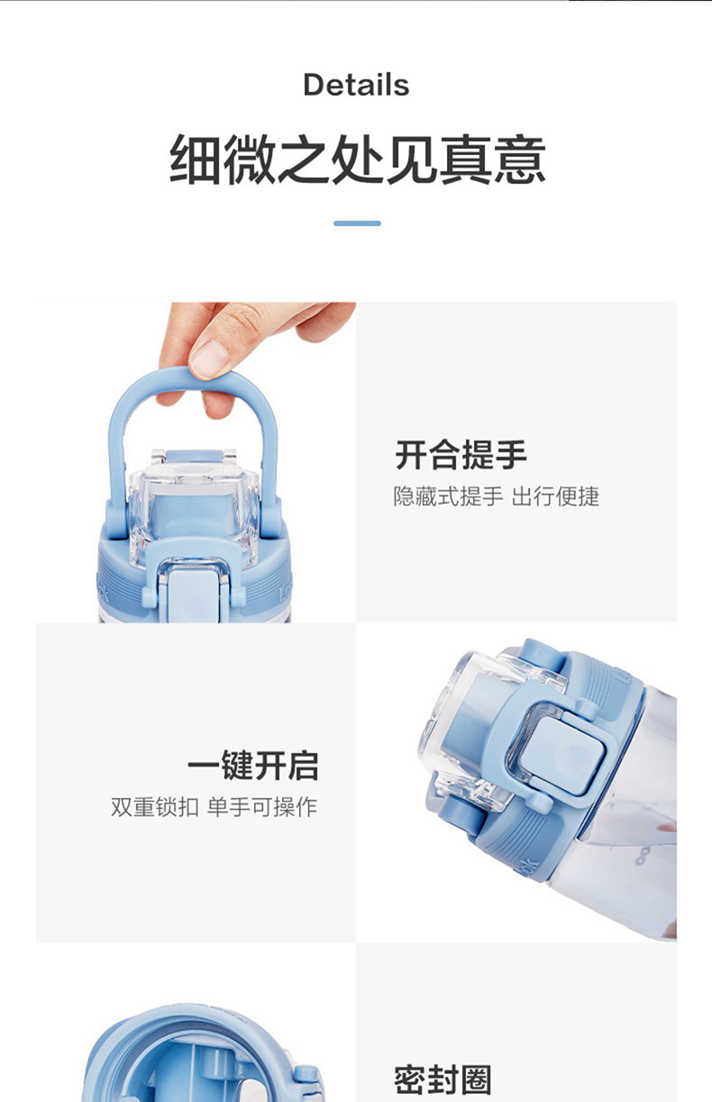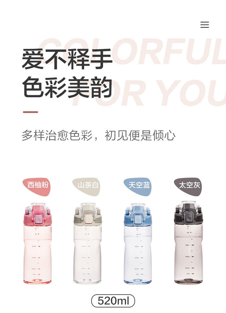 材质:瓶体/小盖-Tritan 大盖/吸管-PP 容量:520ml 产品颜色:白色