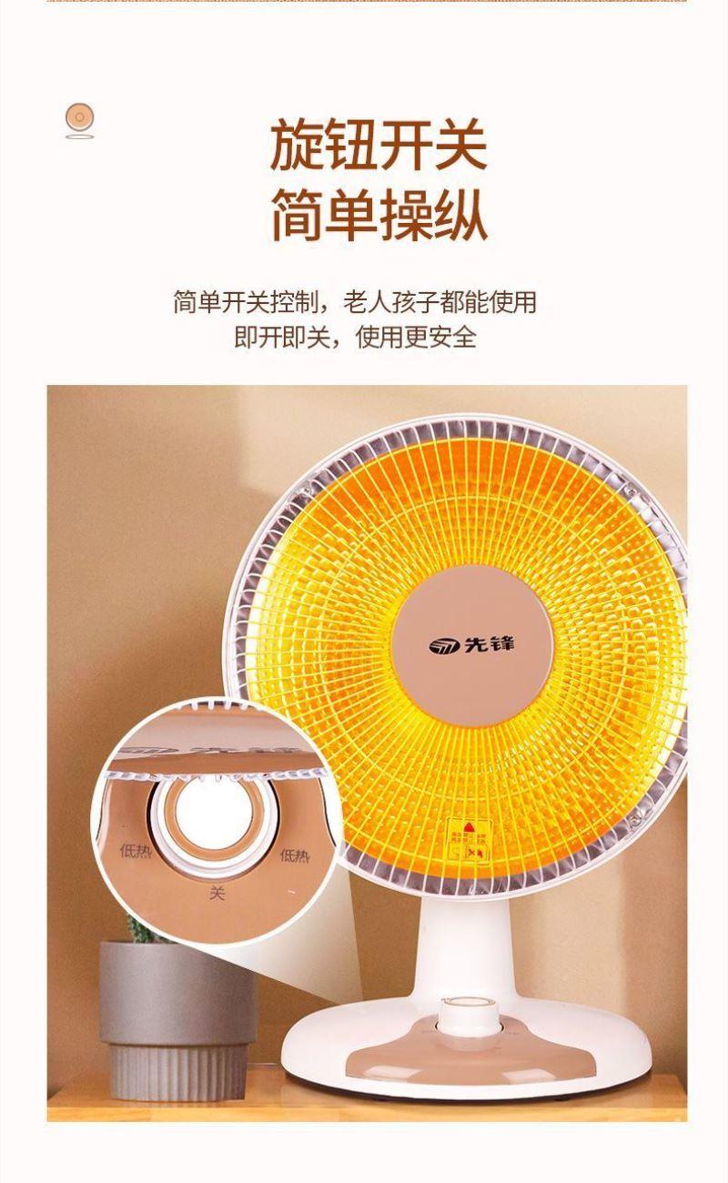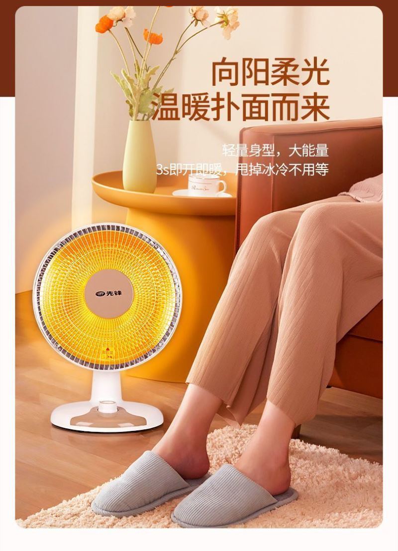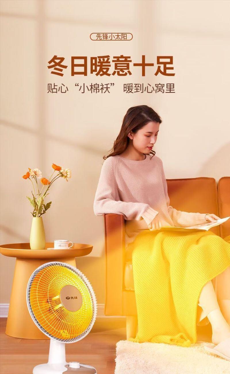 加热方式:通常先锋小太阳采用石英管加热或红外反射式加热,利用石英管发热快的特性,快速提升温度。 功率:可能设有两档功率,功率在 1500W-2200W 之间,可根据需求选择不同功率档位。 额定电压:一般为 220V/50Hz,符合国内家庭用电标准。 适用面积:参照同系列产品,适用面积在 10㎡以下,适合小空间取暖,如卧室、书房局部区域等。