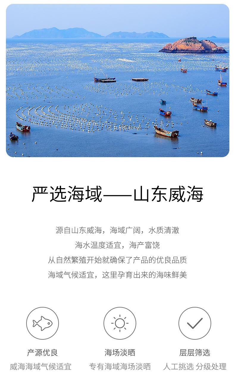 配料:干贝 原料产地:山东省威海市 净含量:165克 保质期:10个月 生产日期:见包装物打印处 食用方法:用清水浸泡回软,洗净后可炖、煮、蒸等,还可为多种菜肴调出美味。本品精选颗粒完整、大小均匀、色淡黄而略有光泽的优质干贝,其肉质细嫩、口感鲜甜。古人曰:“食后三日,佑觉鸡虾乏味。” 可见干贝之鲜美非同一般。