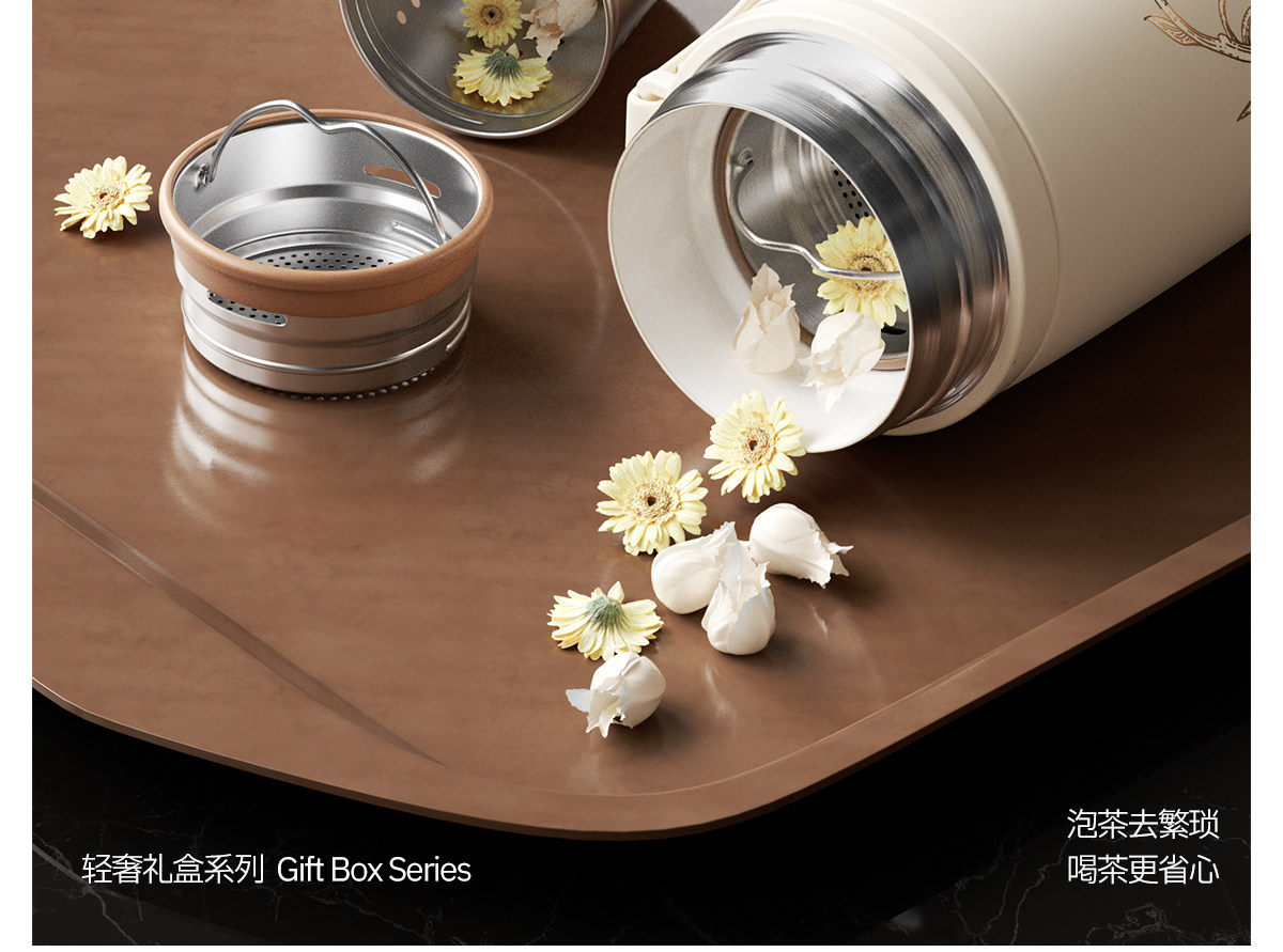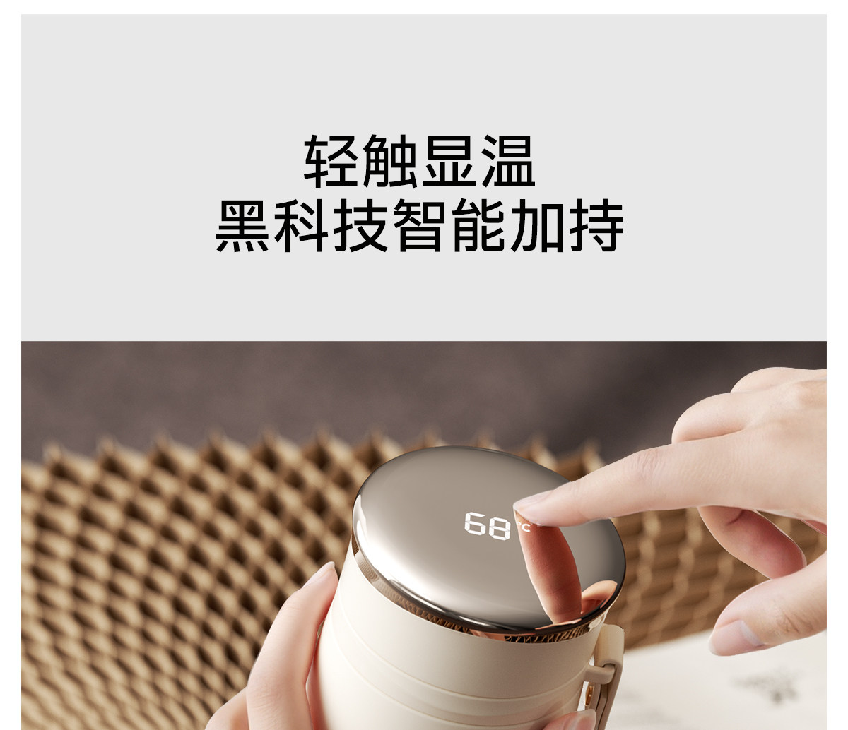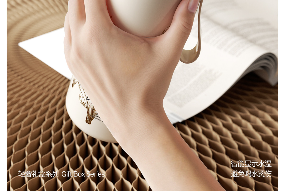 型号:VO-LL46CT 颜色:铃兰白 容量:460ml+350ml 尺寸:190*72mm/103*86mm 材质:316不锈钢内胆,陶瓷马克杯,硅橡胶 产品卖点:1.知温度识冷暖,心坎里的保温杯 2.轻触显温,黑科技智能加持 3.独立茶仓,优雅喝茶不吐渣 4.鎏金马克杯,美观且握感舒适