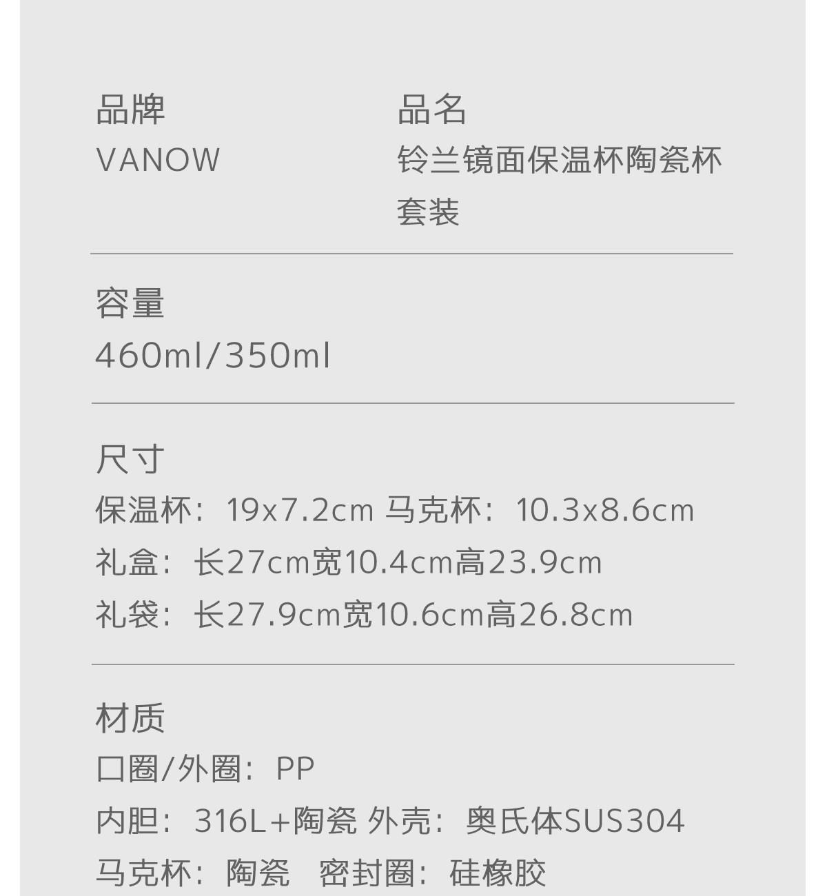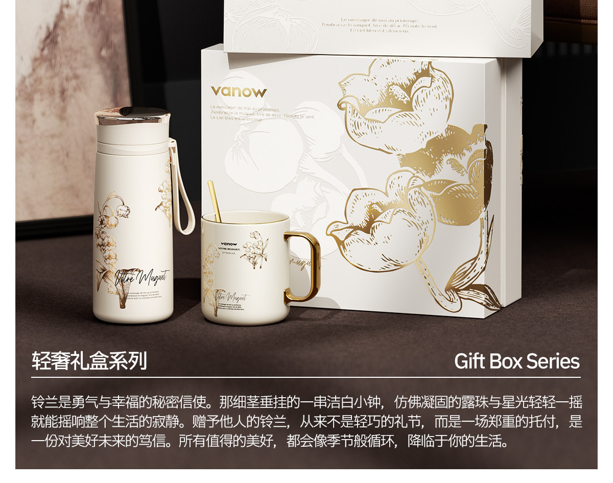 Vanow铃兰镜面保温杯陶瓷杯套装VO-LL46CT