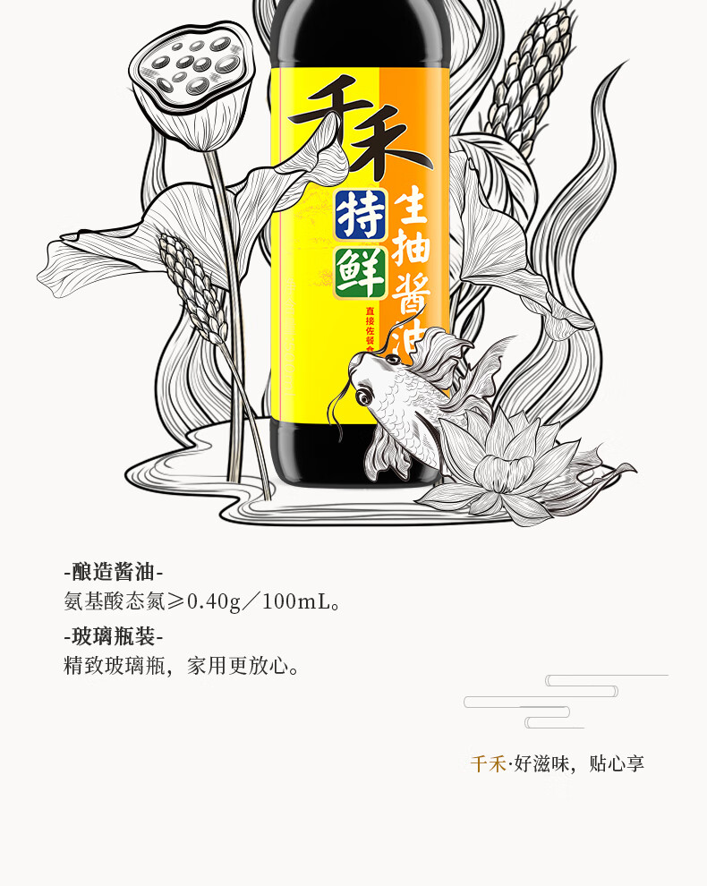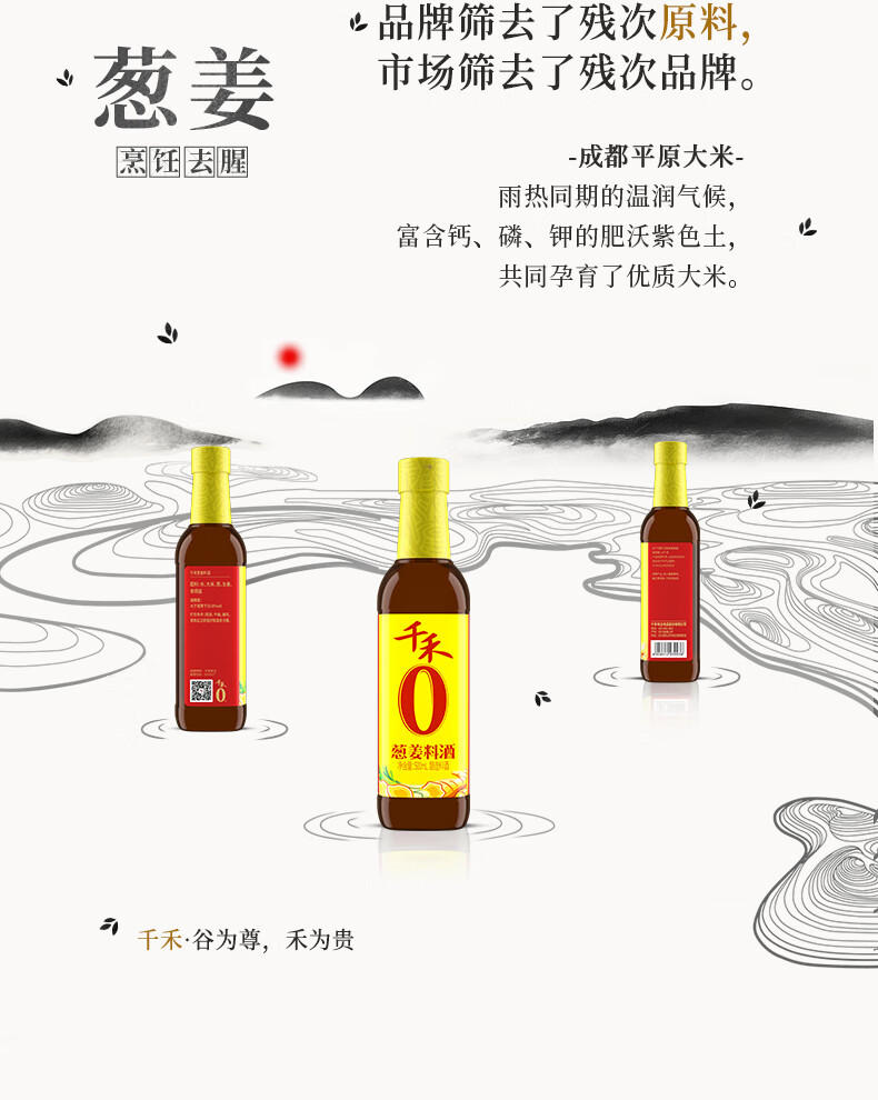 内配: 千禾特鲜生抽酿造酱油500ml 千禾零添加糯米香醋精酿500ml 千禾零添加葱姜料酒500ml 千禾御藏蚝油12%510g