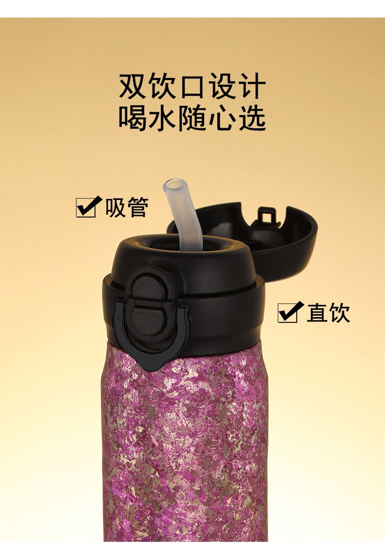 单个尺寸:6.6*22cm 外装尺寸:8*16*25.6cm 产品容量:450ml 净重:230g 颜色:银色、蓝色、紫色