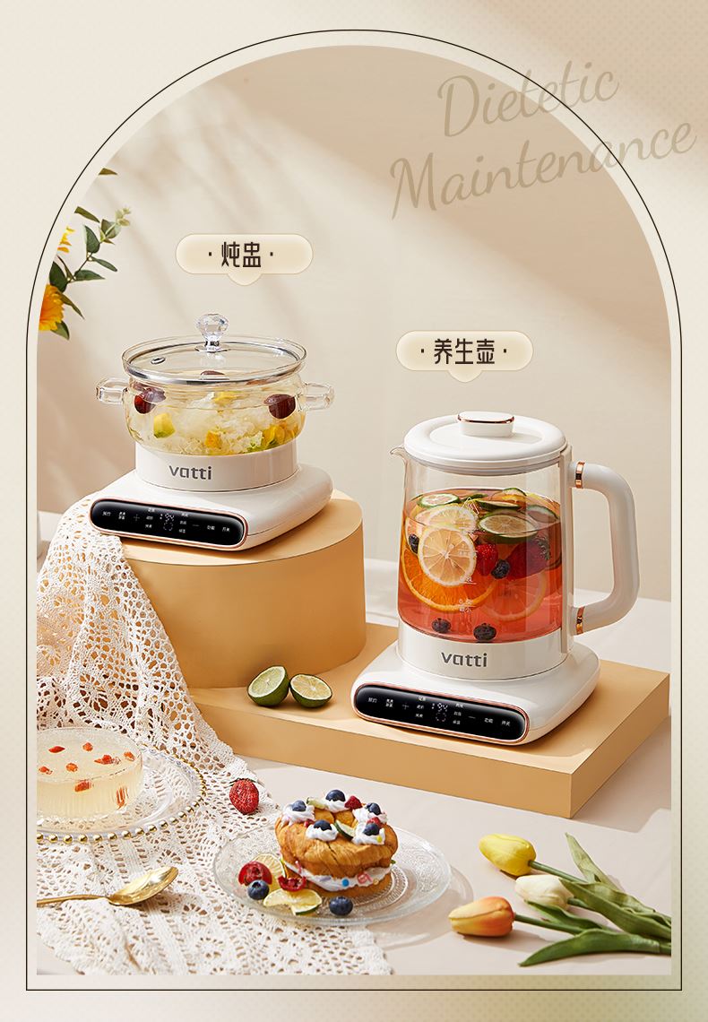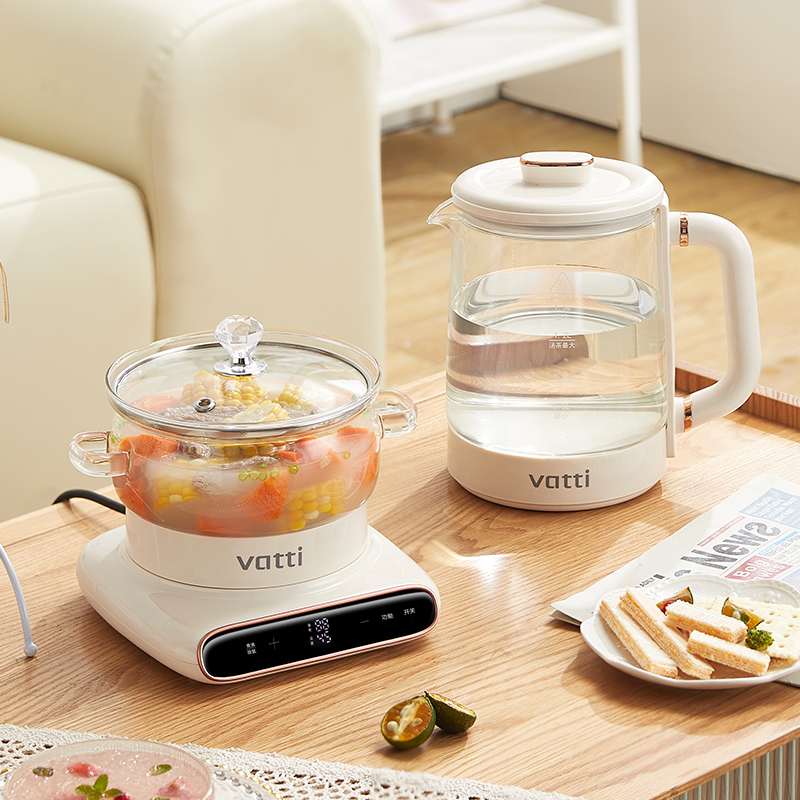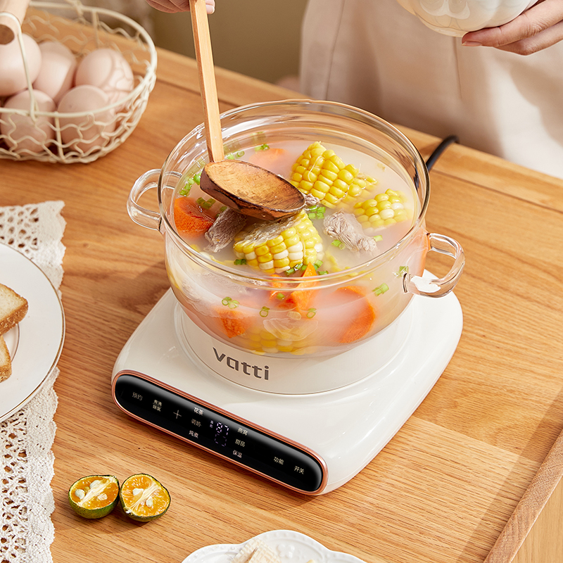 1.炖煮二合一:茶饮炖品随便切换 2.稳定功率节能:600W功率,节能高效,低噪加热。 3.优选材质:高硼硅玻璃壶身,无异味,易清洗 4.液晶显示屏:清晰显示直观,操作状态一目了然。