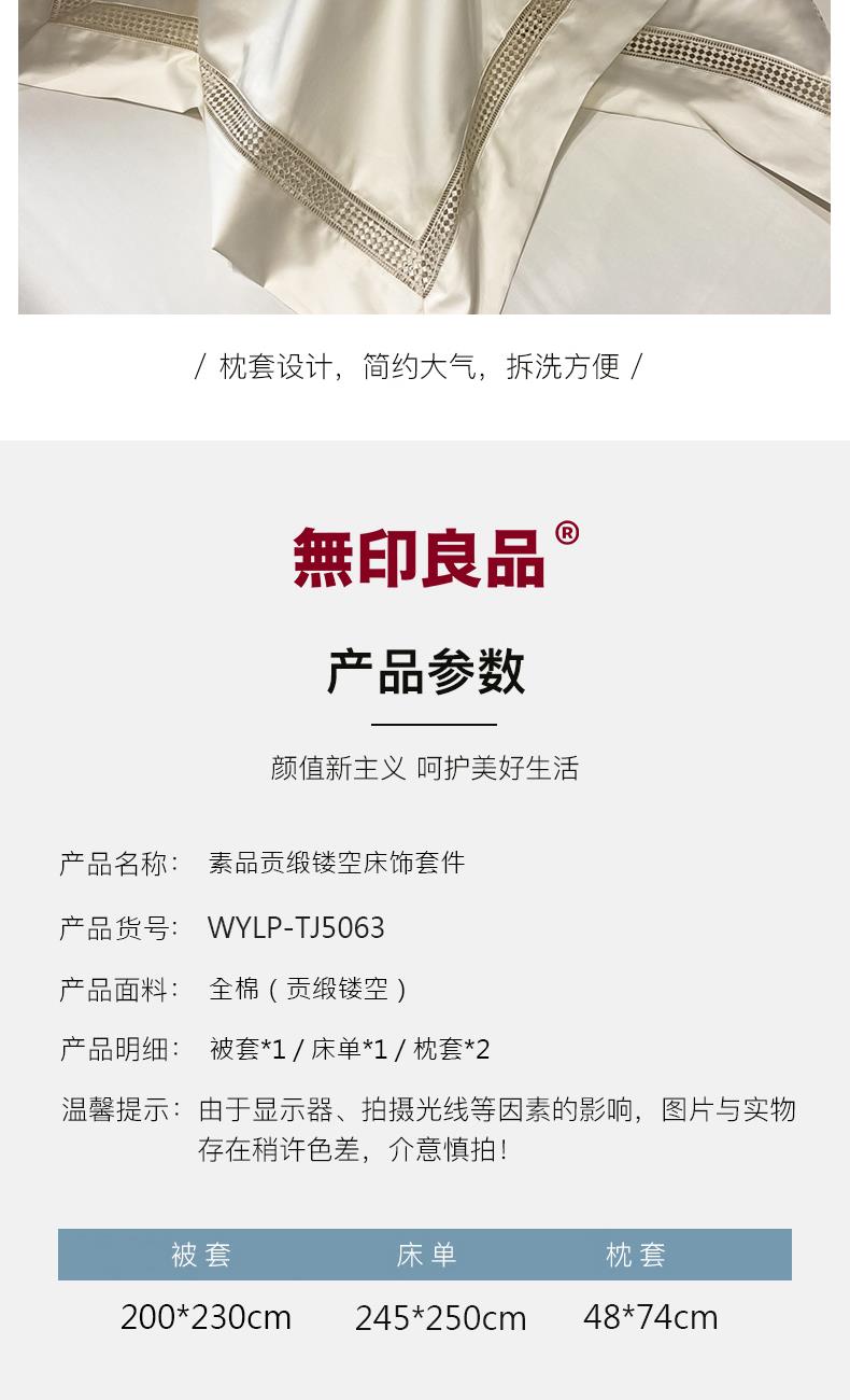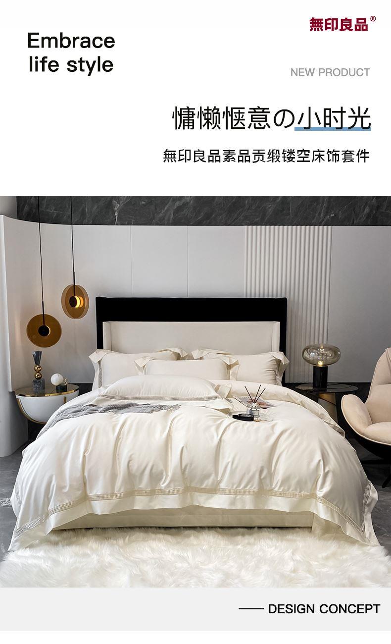 無印良品素品贡缎镂空床饰套件WYLP-TJ5063