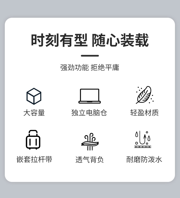 产品材质:900D阳离子 大外箱尺寸:50*60*70cm 背包尺寸:32*12*42cm 净重:0.7kg左右 毛重:23kg左右