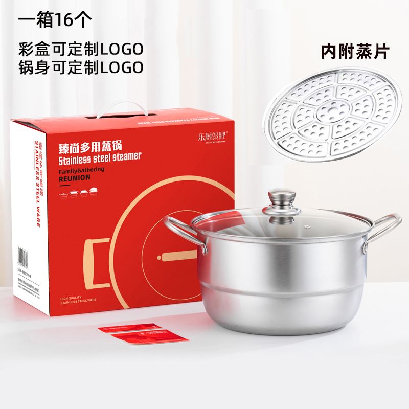产品规格 : 28cm 产品材质 : 410不锈钢 包装方式 : opp透明袋+手提彩盒 彩盒尺寸: 31.5cm * 17.0cm * 27.0cm 送啥都不如送实用!蒸锅礼盒,实用又体面 多层烹饪效率高,美味营养一锅解锁,厨房好帮手。 安全耐腐的材质,结实耐用,让你用得放心 不挑炉具,不管你家是电磁炉还是明火,它都能轻松适配 搭配马上暴富礼盒,开启美味新 “蒸” 程