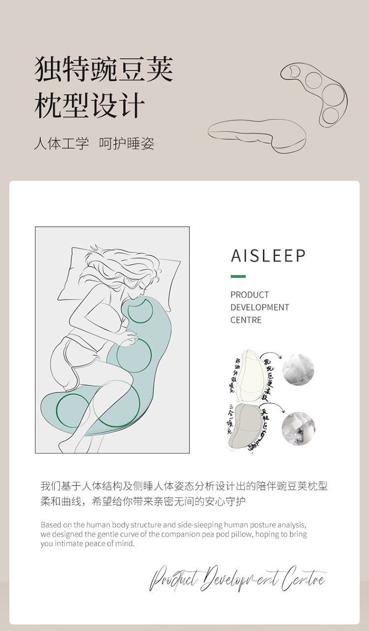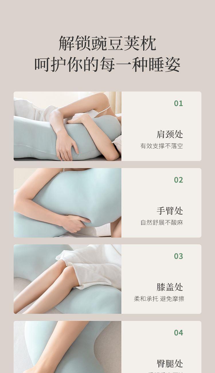 特性优势:睡眠过程中经常翻身、变换睡姿,豌豆枕具有一定的适应性,始终保持对颈部、腰部的的支撑。孕妇怀孕期,身体负担逐渐加重,能够有效缓解腰部和腹部的压力,减轻孕期的不适。