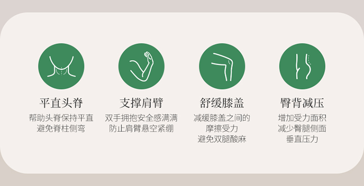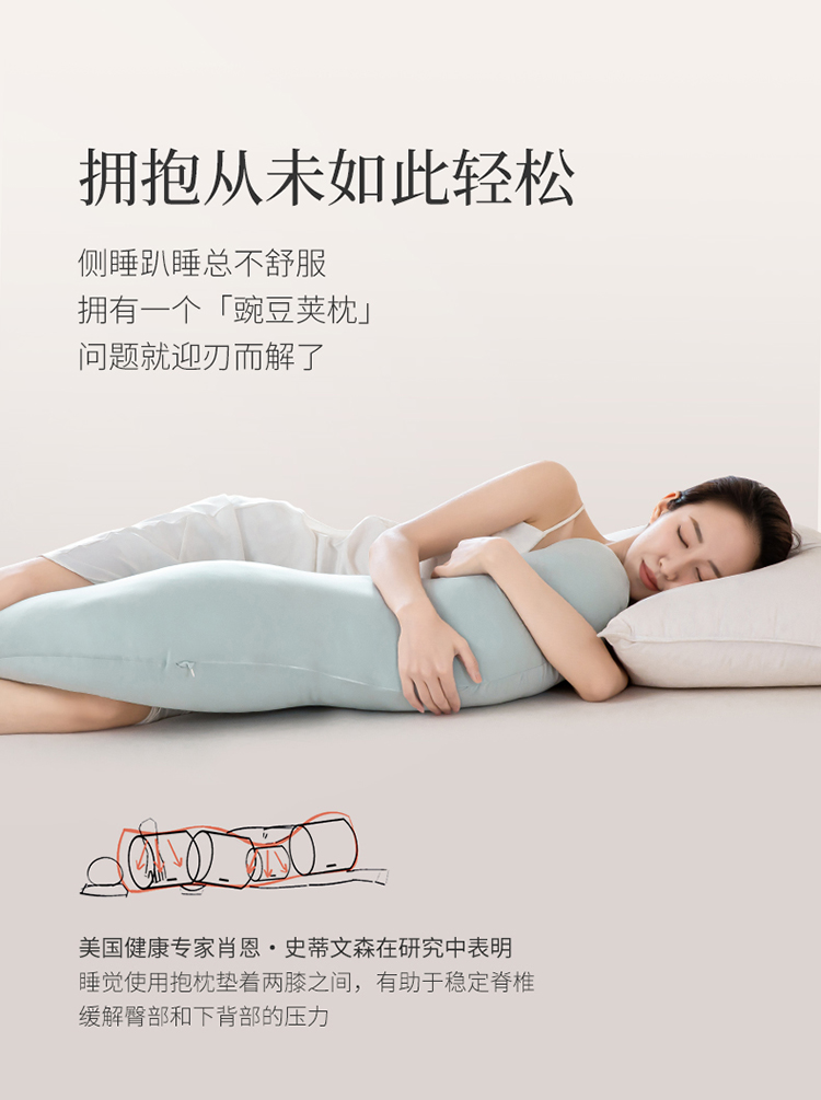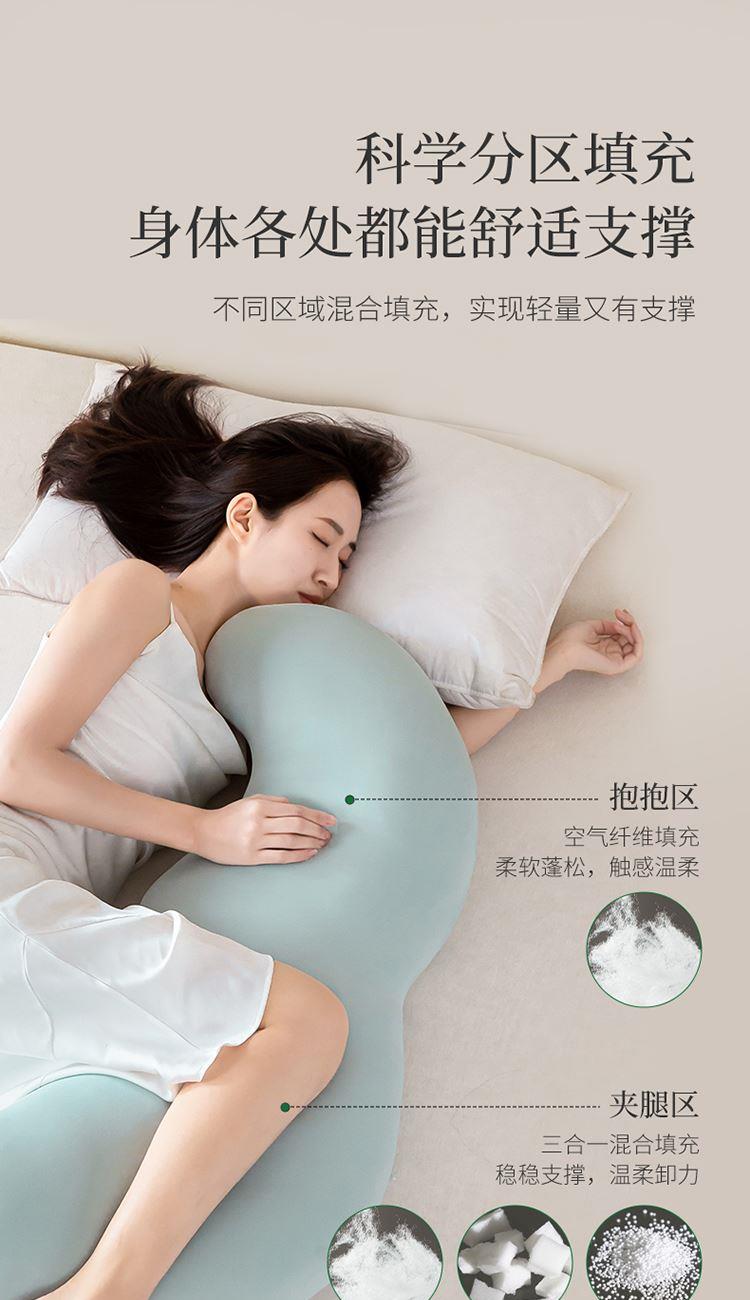益处价值:提供侧睡时的良好支撑,带来安全感和舒适感,帮助放松身心,更容易进入深度睡眠状态。适合人群:女性用户,孕妇,中老年人群,喜欢侧睡人群
