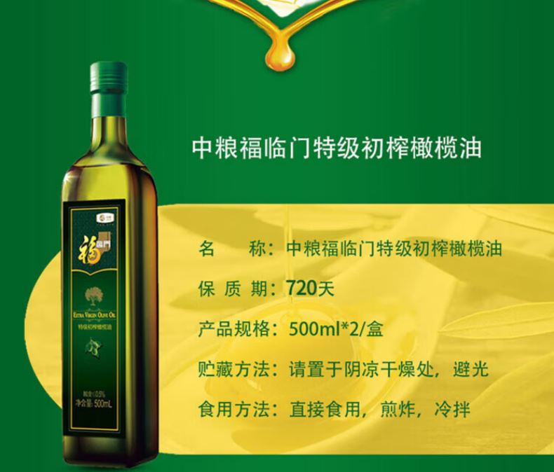 净含量:1L 开票税率:9% 产品卖点: 中粮品质 + 西班牙特级初榨:央企背书,甄选西班牙安达卢西亚优质橄榄,天然酸度≤0.5% 优于国标,"液体黄金" 更健康 低温冷榨锁鲜 + 营养丰富:压榨保留橄榄多酚与维生素 E,单不饱和脂肪酸≥77%,凉拌热炒皆适配,助力心血管健康 500ml*2 礼盒 + 体面馈赠:双瓶装控量保鲜,精致礼盒适配节庆送礼、员工福利,健康与心意双传递