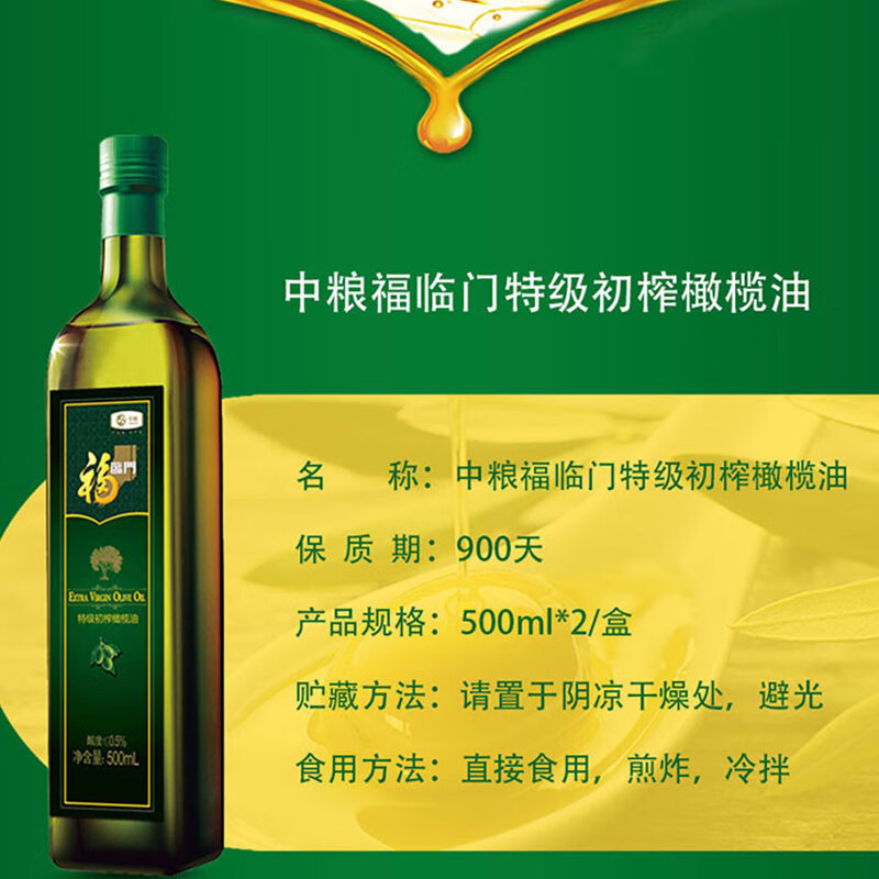 中粮福临门特级初榨橄榄油500ml*2瓶礼盒