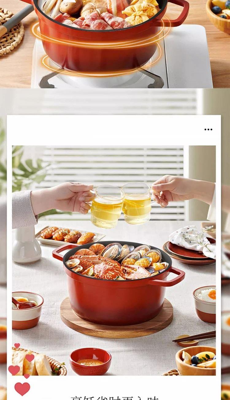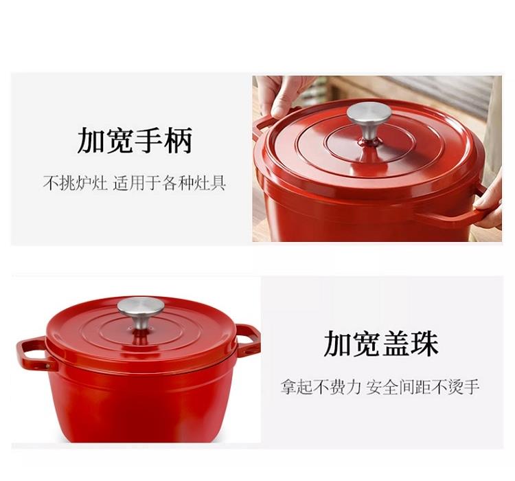 规 格:24cm 材 质:精铁 颜 色:红色 包装尺寸:30*30*16.5cm 精选优质铁基材,锅体采用独特工艺一次模压成型,独特造型优雅大方,尽享时尚烹饪生活;不粘涂层,省油少烟,光洁易亮,耐腐蚀,经久耐用,烹饪味道更可口; 珐琅瓷内壁、光洁表面易于清洗、一冲即净 把手设计、方便拿取、握感舒适