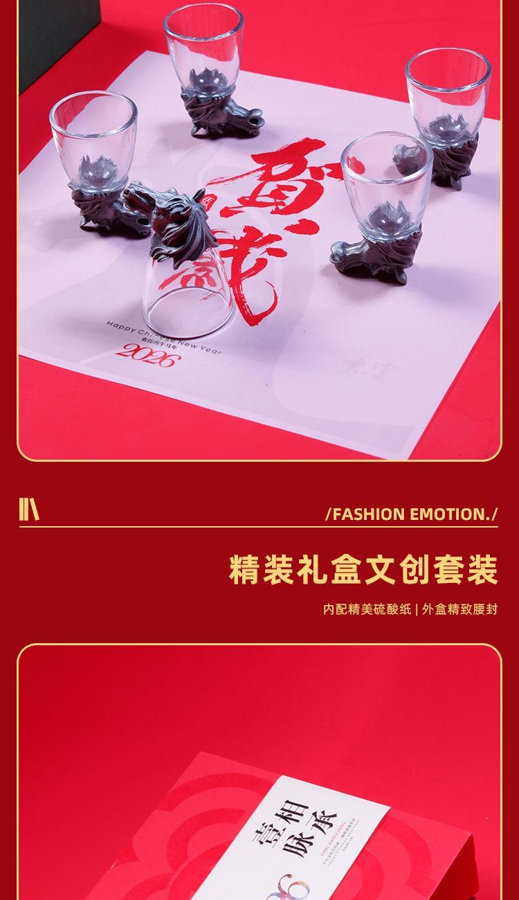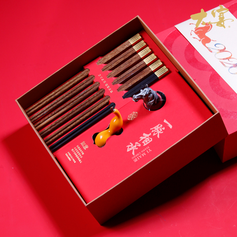 鸡翅木筷*5黑檀木筷子x1 生肖酒杯x1 (默认马首) 福禄陶瓷筷架x1 7.3*3cm 精装礼盒手提袋 免费定制logo一套起订 可以私人定制